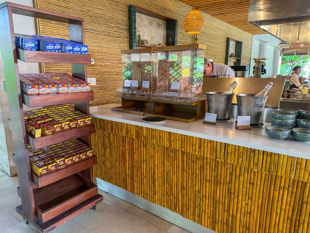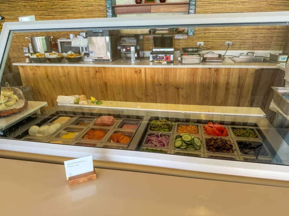 Les produits sont toujours bien présentés et réfrigérés. Il y a une même une station pour faire votre propre jus d’orange pressé.
