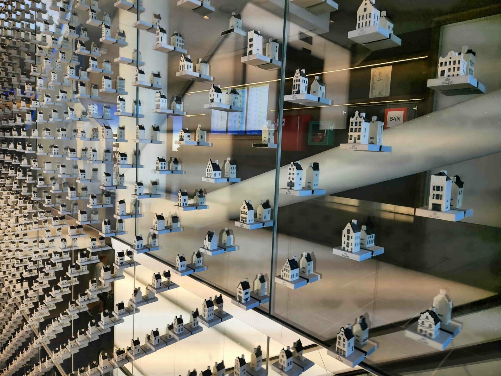 Il y a un espace KLM où le personnel peut vous aider à répondre à vos besoins en matière de voyage, et une vitrine sur les 100 ans d’histoire de KLM avec, vous l’aurez deviné, d’autres maisons bleues de Delft !