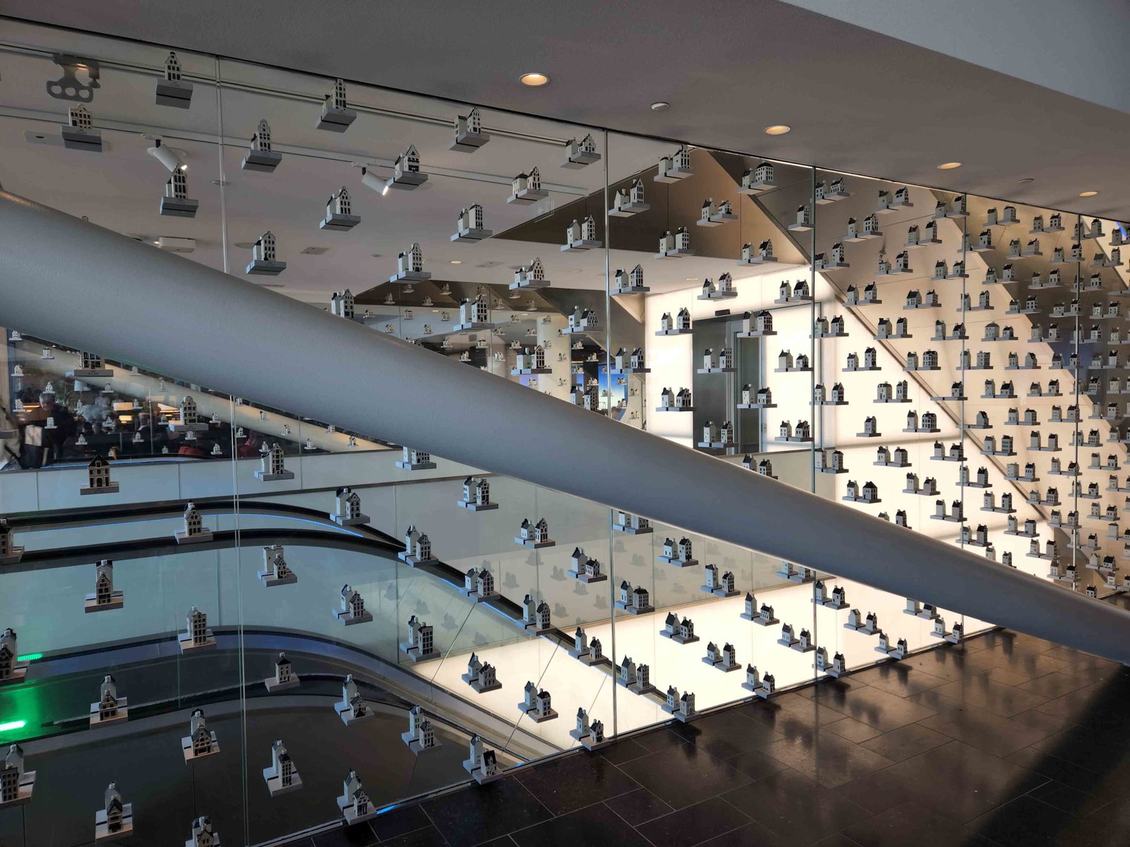Un examen de ce salon doit commencer par sa caractéristique distinctive : Les célèbres maisons bleues Delft de KLM. Ces objets de collection sont fabriqués aux Pays-Bas, contiennent une bouteille de gin hollandais, sont distribués aux passagers de la classe affaires sur les vols intercontinentaux et sont présents par milliers dans ce salon. En tant qu’avgeek, je les adore personnellement et je me constitue une petite collection à la maison à chaque vol que je prends avec la compagnie aérienne.