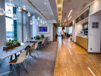 La salle est dotée de grandes fenêtres ce qui la rend très lumineuse; un détail non-négligeable lorsqu’on passe de longues heures à l’intérieur. Le décor est contemporain aux tons neutres et chauds avec des lumières qui donnent un style un peu plus sophistiqué aux lieux.