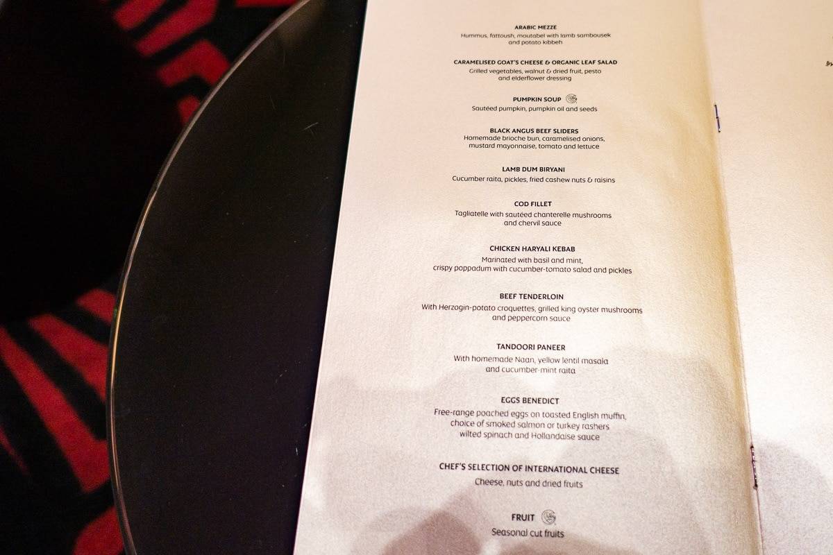 La première partie du salon est dédiée à la salle de restaurant. Ici, point de buffet de plats chauds / froids: le service est à table après sélection sur le menu.