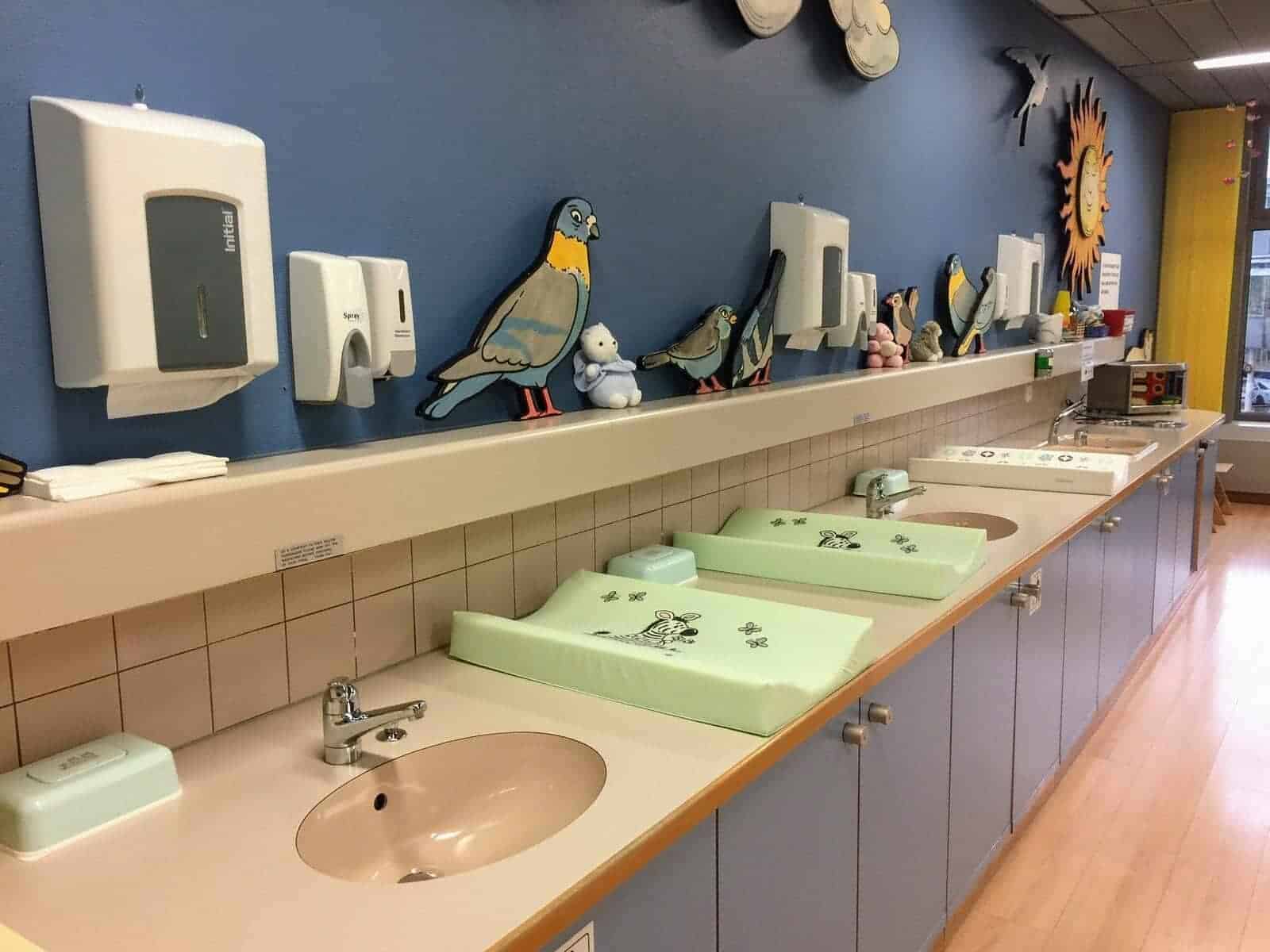 De nombreuses tables de changes sont mises à disposition avec des lingettes et éviers.