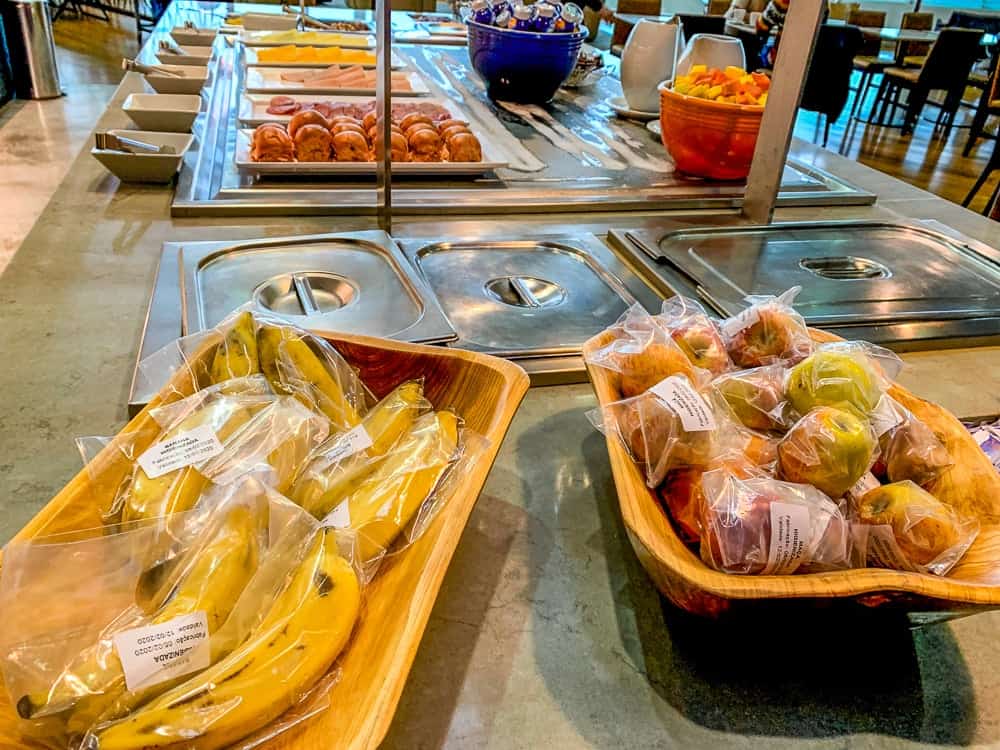 L’offre du petit-déjeuner était décente, quoique j’ai déjà vu mieux. Mais en ce lundi matin, le salon est pratiquement vide et les plateaux sont à peine touchés. J’y ai vu peu de personnel durant ma visite, seulement une dame qui garnissait le réfrigérateur de boissons.
