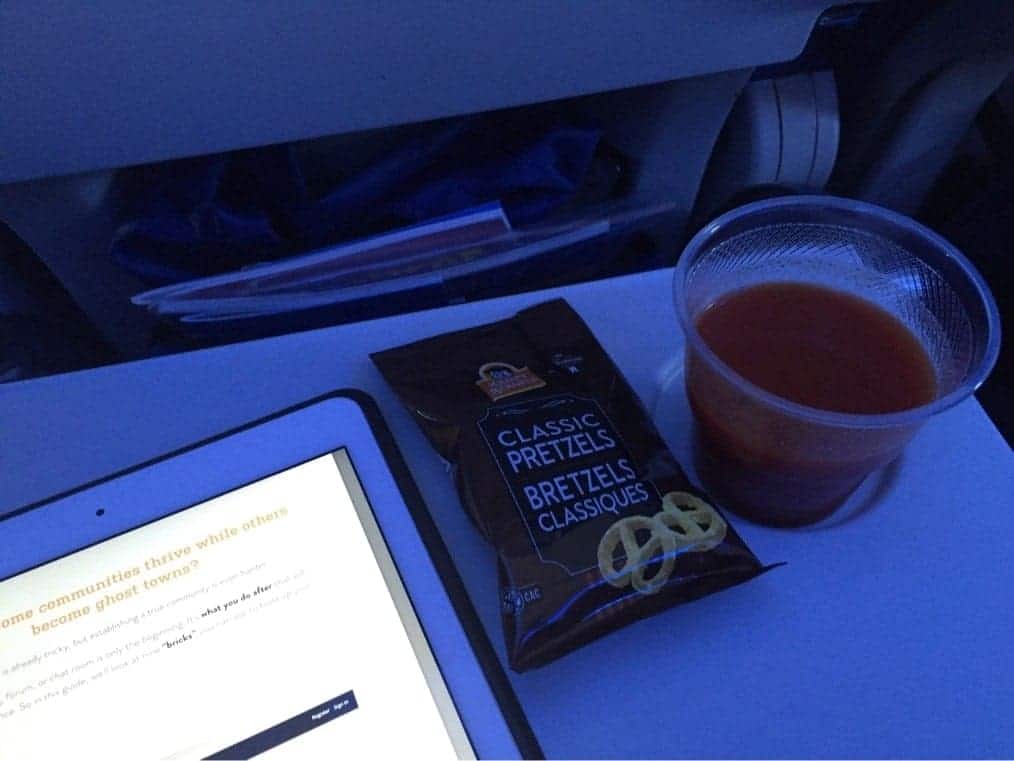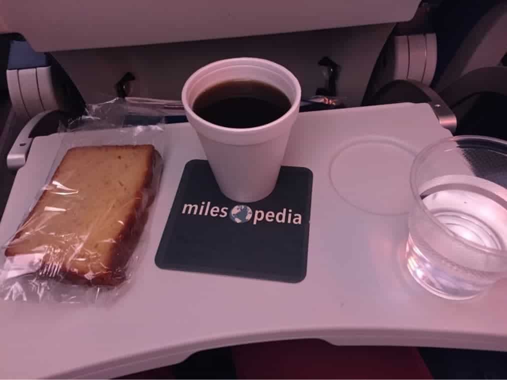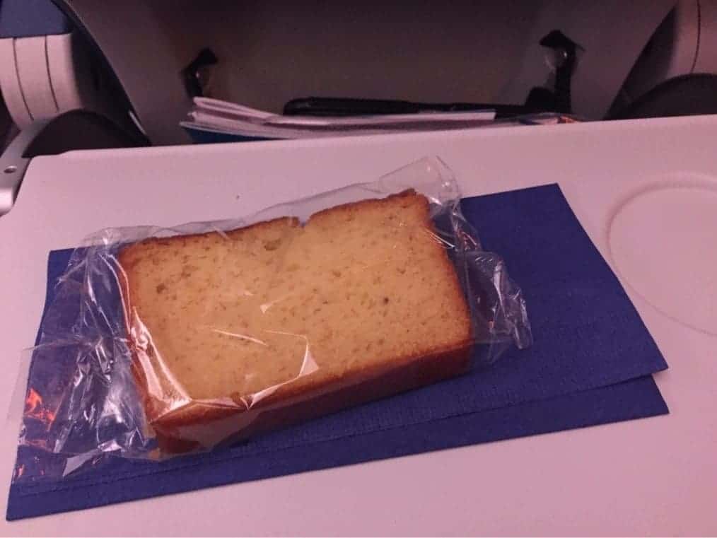 Une heure avant l’arrivée une collation est servie. Là aussi on est loin d’un déjeuner complet…