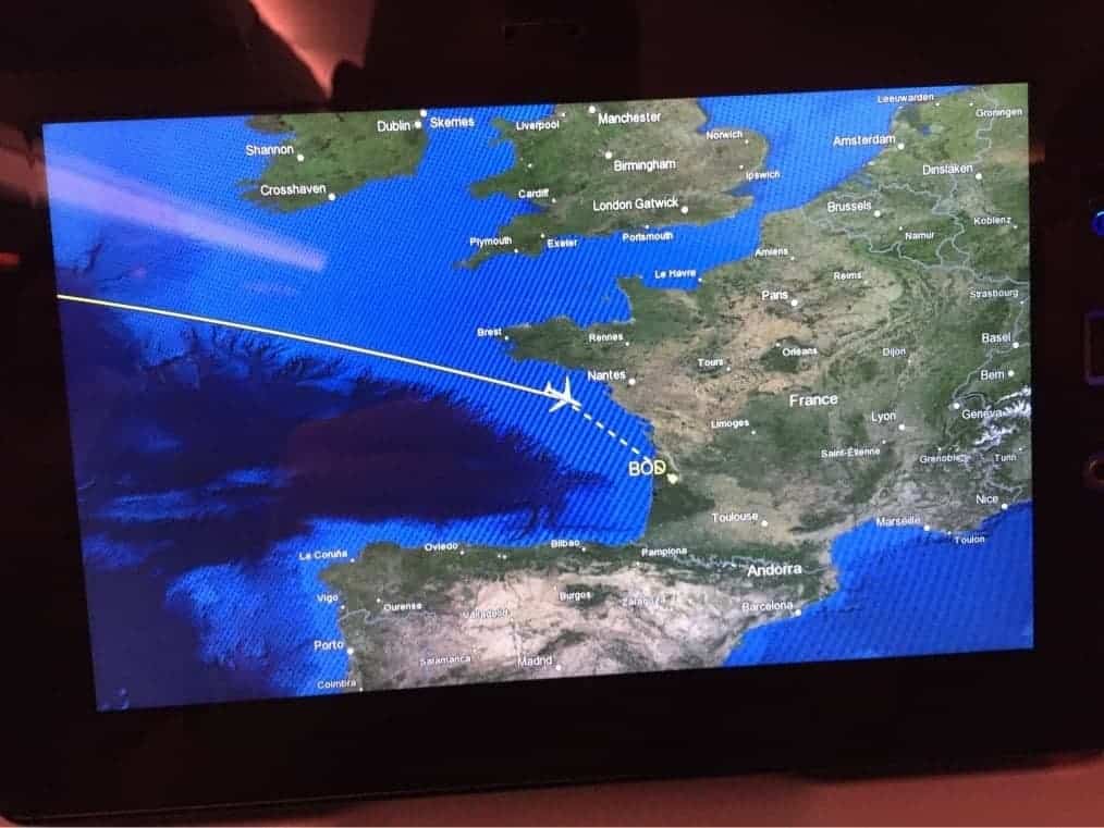 Il était temps de partir vers la porte 63 d’où partait mon vol. Les priorités ont été scrupuleusement respectées (Classe Club, les personnes ayant acheté un Pass Option Plus). L’embarquement s’est terminé à l’heure, le commandant nous indiquant un temps de vol de 6h50, relativement long. C’est vrai que pendant le vol, les vitesses affichées n’étaient pas stellaires.
