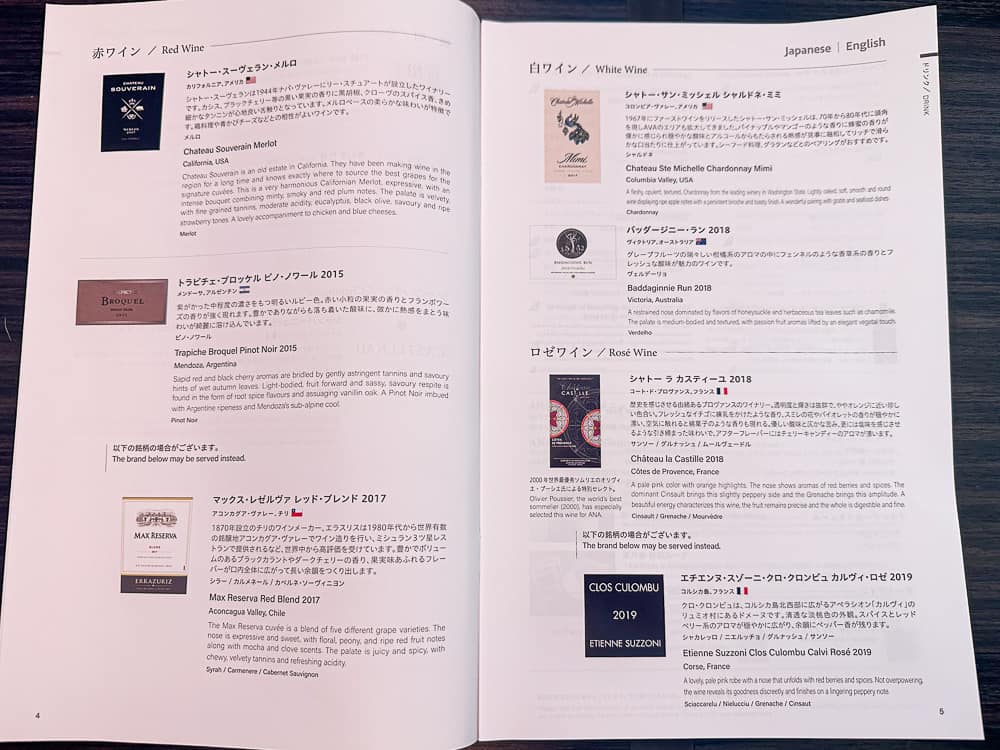 Voici le menu des plats servis en classe affaires ANA The Suite entre Tokyo et New York ´