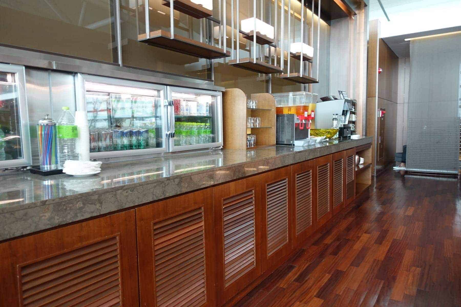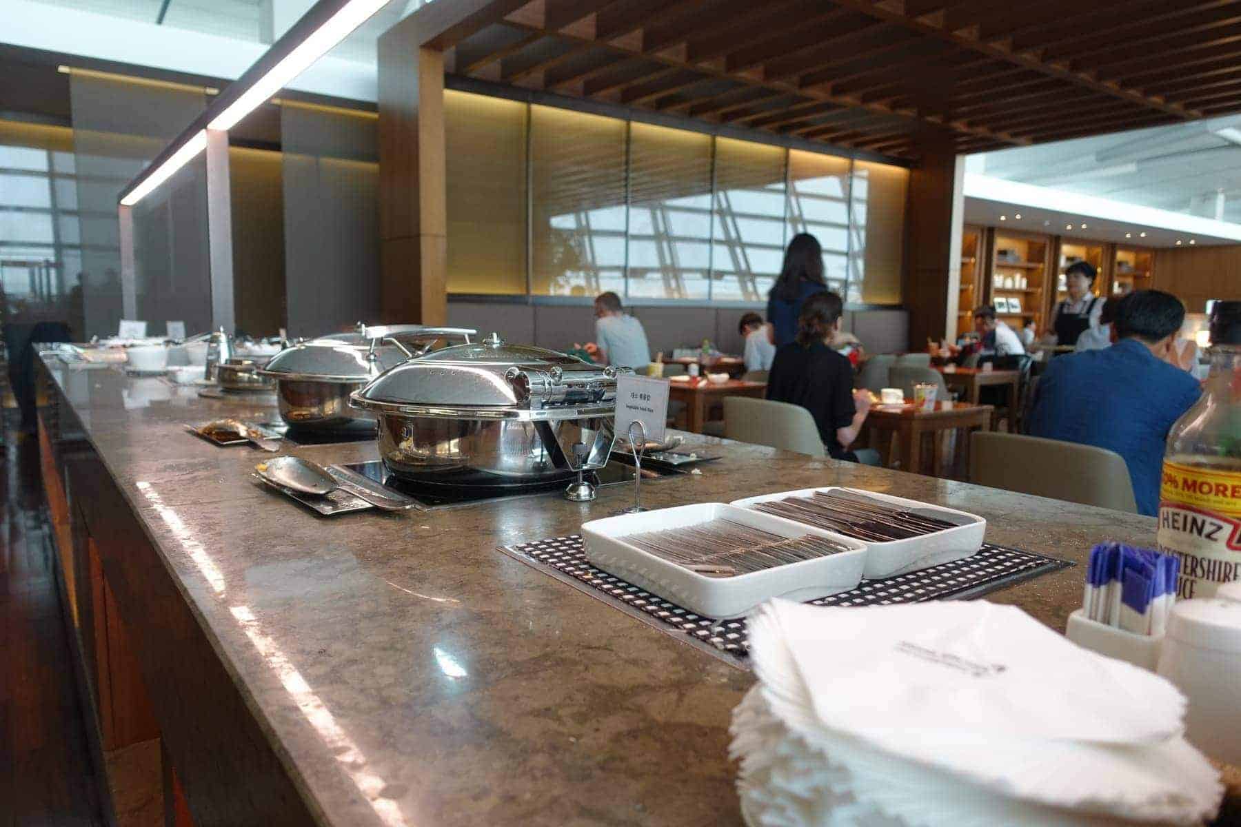 Étant le hub de la compagnie coréenne le salon est relativement grand. Il ne se démarque pas par son offre, il reste une valeur sûre mais il ne se classe pas parmi les salons les plus confortables au monde. Le contrôle à l’entrée se fait vite, à noter pour 30$ on peut accéder au salon Première classe. C’est un peu « cheap » de vendre un accès au salon de sa classe la plus élevée. Il est découpé en deux salles qui se ressemblent un peu car chacune contient un buffet de boisson et nourriture.