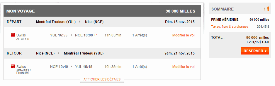 Depuis fin 2015, le tarif est de 110 000 miles Aéroplan.