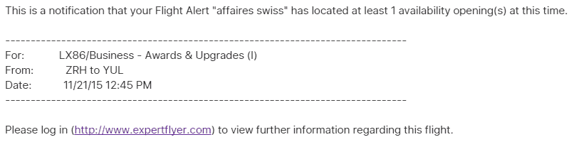 Arrivé à Nice lundi matin, j’ai en effet reçu une alerte d’ExpertFlyer m’annonçant cette excellente nouvelle.