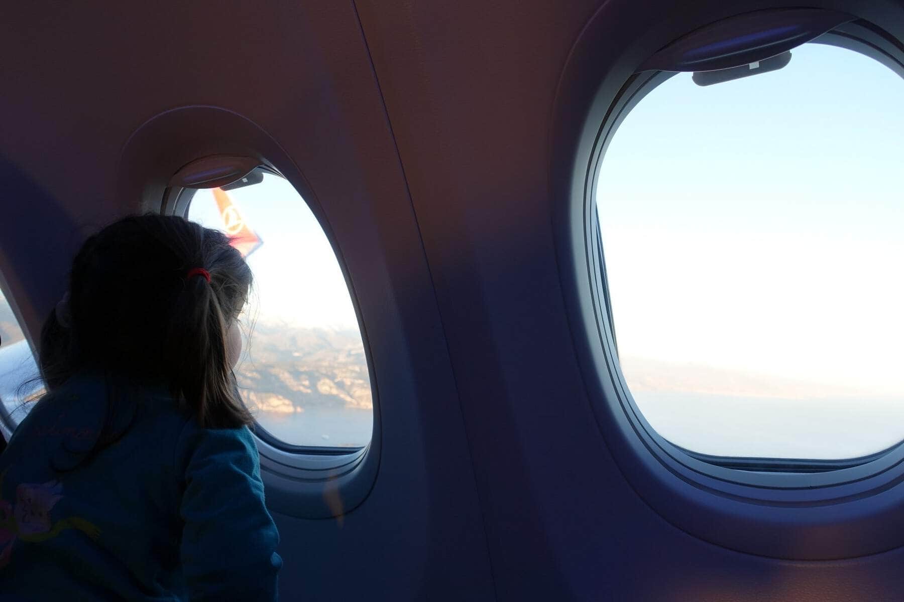 Alexandra profite pour jeter un dernier coup d’oeil sur la Côte d’Azur que nous ne verrons pas avant au moins 6 mois. C’est parti pour la suite de notre mini-tour du monde avec des miles aéroplan en famille !