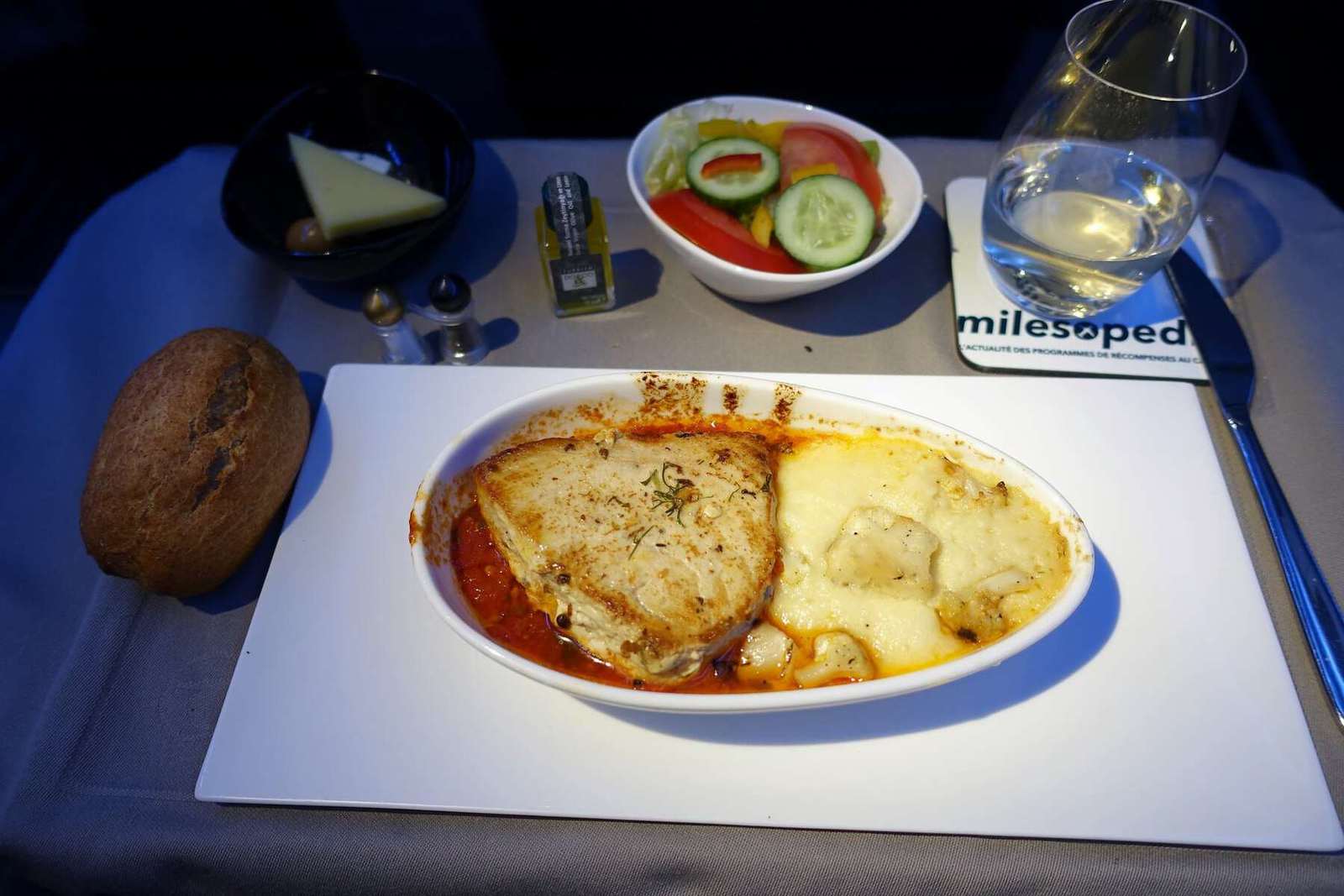 Peu de temps après le décollage, un repas complet nous a été servi. Là aussi, nous sommes plutôt au niveau d’un vol long-courrier qu’un moyen-courrier européen.