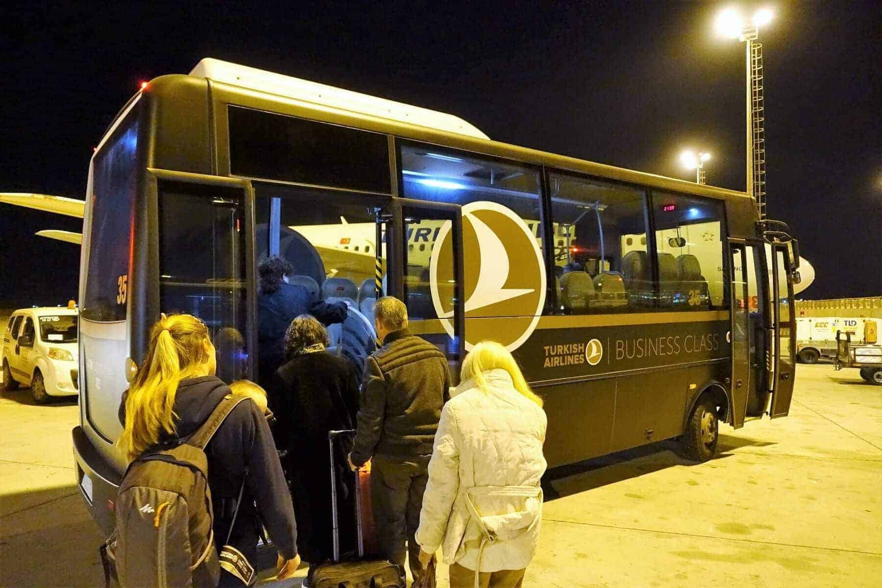Les passagers en classe affaires ont leur propre bus ce qui permet d’atteindre rapidement la zone de transit.