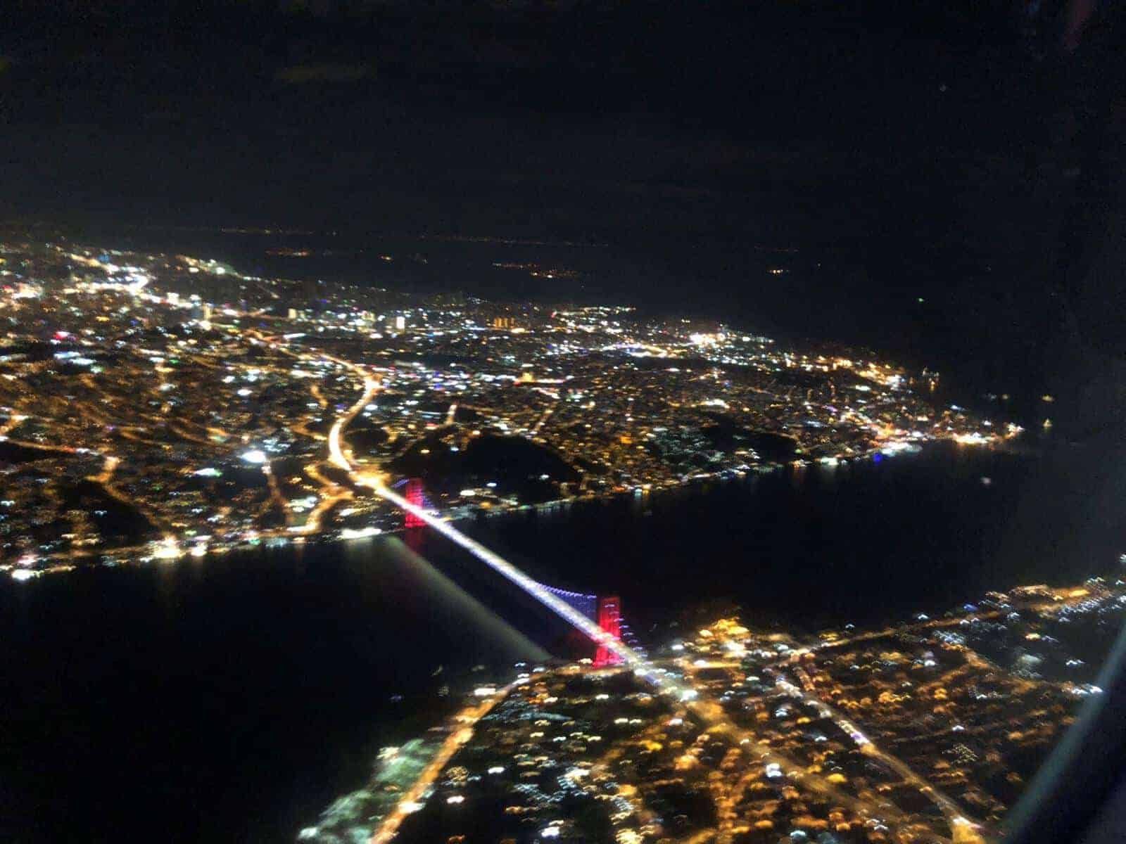 Après un passage au dessus de la ville brillant de mille feux, nous atterrissons sans encombre à l’Aéroport d’Istanbul.