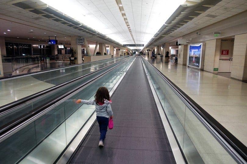 Nous parcourons les longs halls du Terminal G, vaste terrain de jeu pour Alexandra.