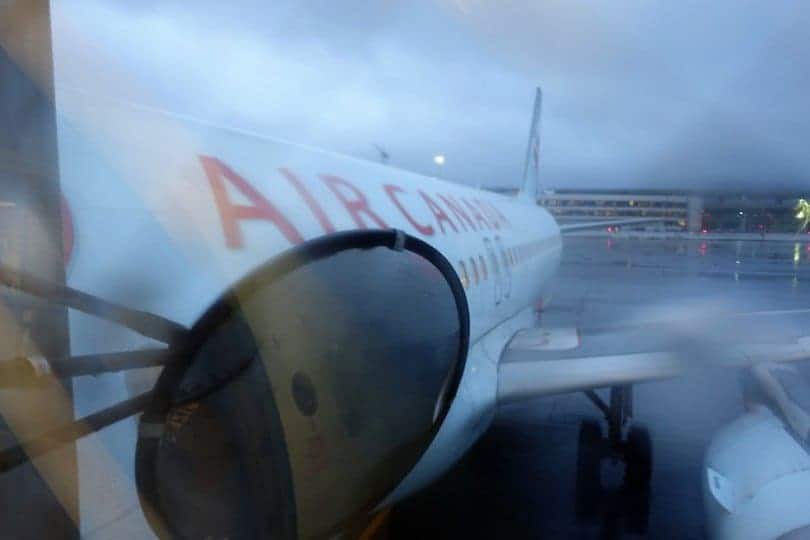 Peu après notre passage au salon, nous nous rendons en porte d’embarquement. L’avion, un Airbus A320 immatriculé C-FZQS est déjà là, toujours aux anciennes couleurs d’Air Canada.