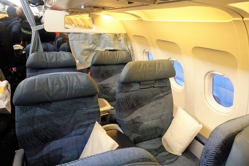 Il s’agit de l’ancienne cabine affaires (la nouvelle prenant place à bord des nouveaux B737 Max d’Air Canada). À vrai dire, c’est le type de cabines que vous avez l’habitude de voir sur l’ensemble de la flotte court / moyen-courrier d’Air Canada et qui restera en place encore quelques mois / voire années.
