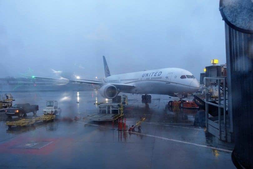 Nous quittons notre porte avec un B787 Dreamliner aux couleurs d’United à nos côtés.