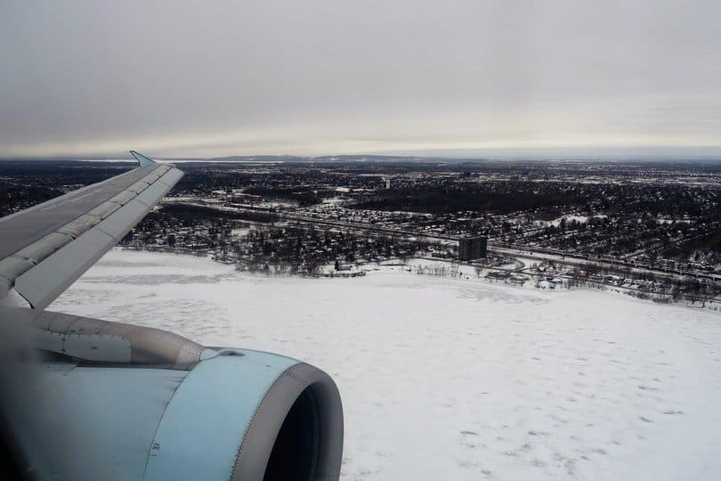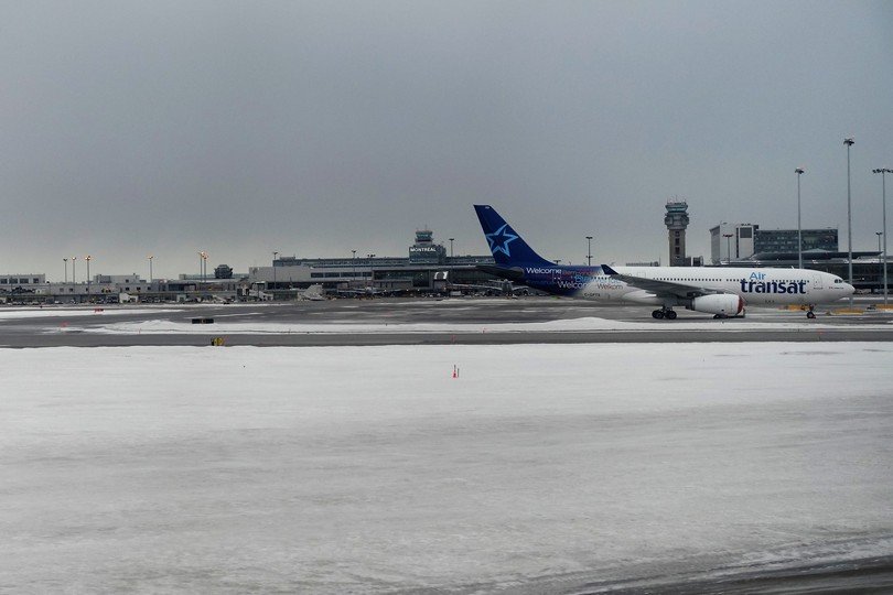 Nous sommes bien à Montréal: le sigle de l’aéroport et l’avion d’Air Transat nous le rappelle bien!
