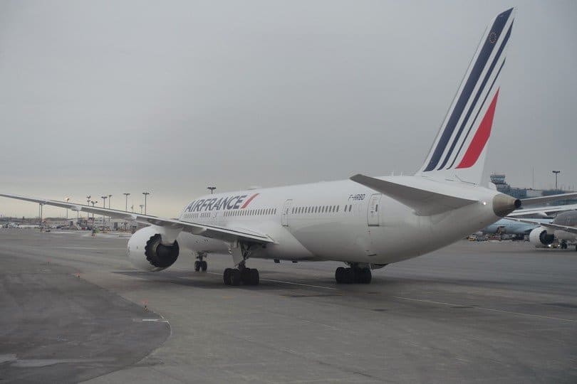 Avant de rejoindre notre porte, nous passons derrière un B787 Dreamliner d’Air France flambant neuf (2 mois) – immatriculé F-HRBD – qui s’apprête à partir pour Paris. Peut-être que nous aurons bientôt la chance de l’emprunter!
