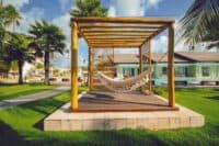 Here, the atmosphere is zen and relaxed; you can unwind in hanging hammocks, stroll through the lush gardens and enjoy the tranquility of the nearby beach.