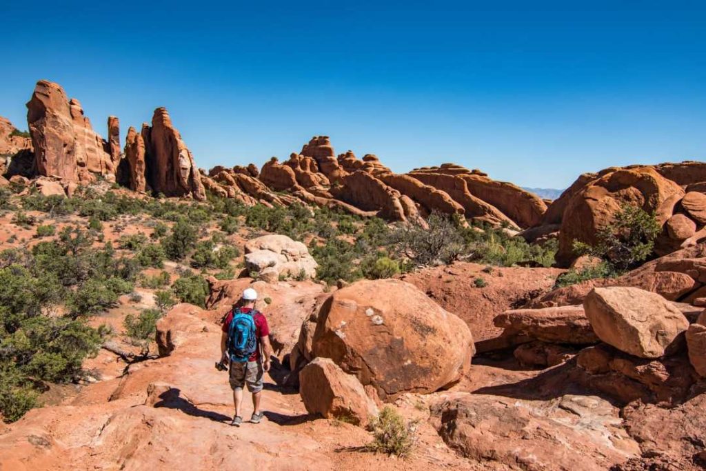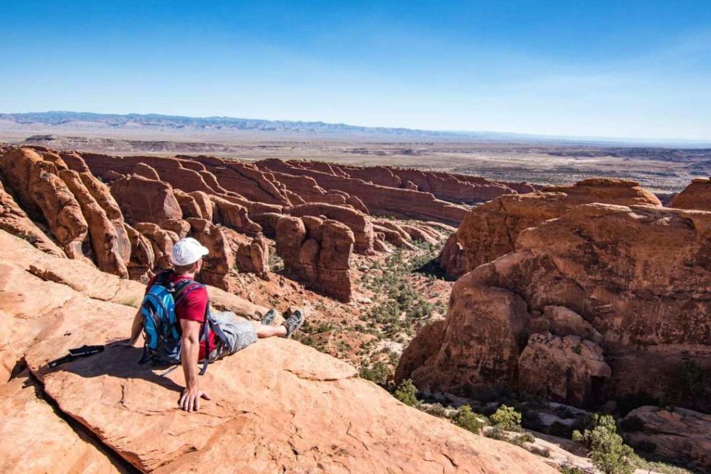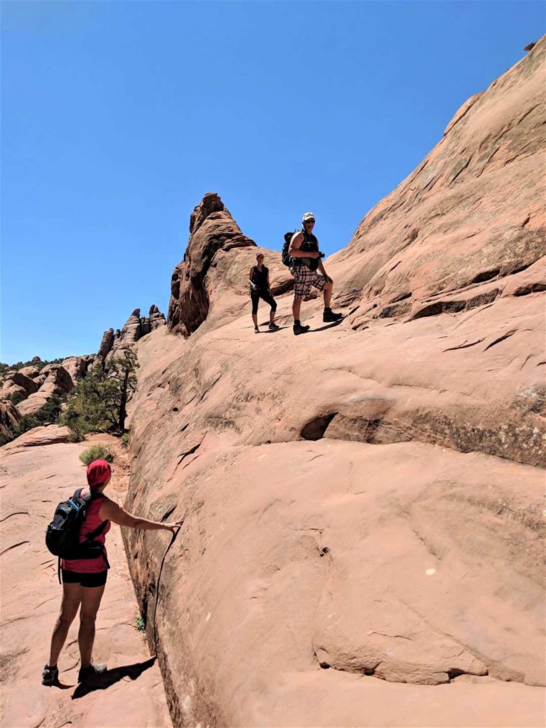 After this little moment of climbing, you will walk on a ridge. Get ready for a sublime visual on Devil’s Garden!