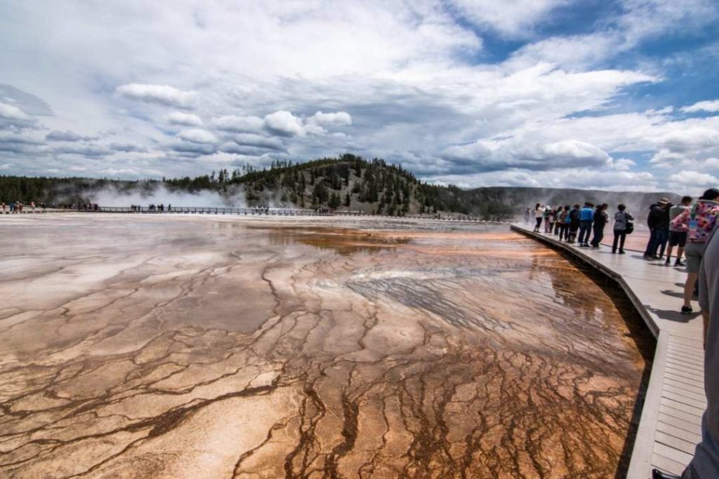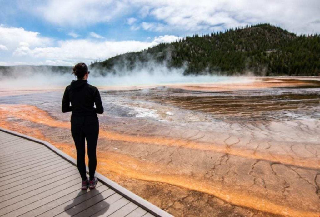 There are two ways to see the Grand Prismatic: from the air or walking around it.