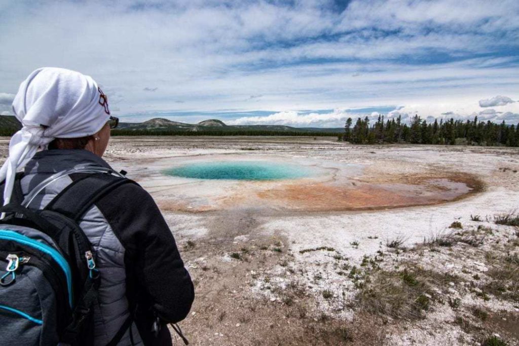 From our accommodation at Old Faithful Lodge, Biscuit Basin is a 10 minute drive. Don’t go too late in the day to be able to find parking not too far away.
