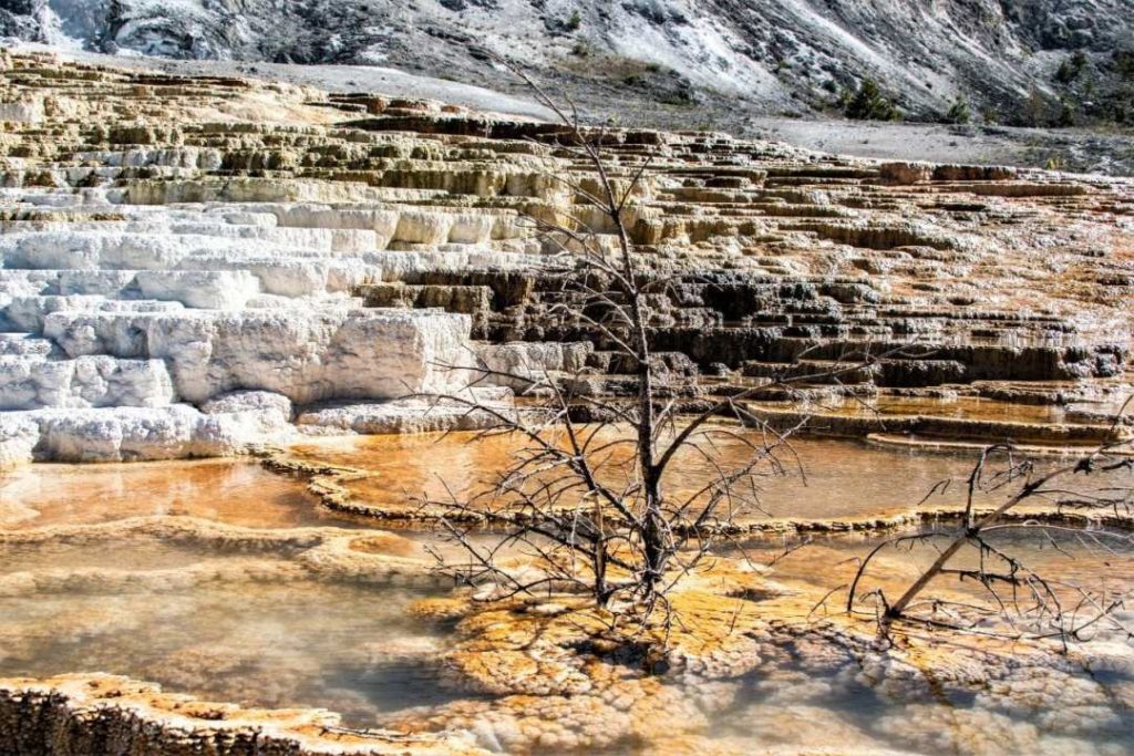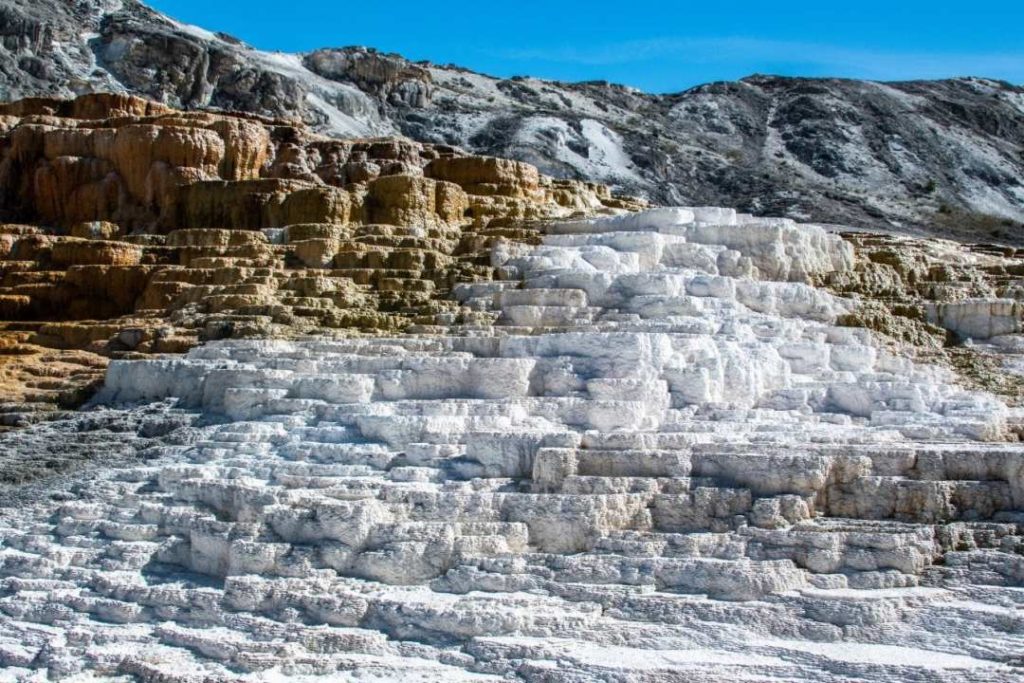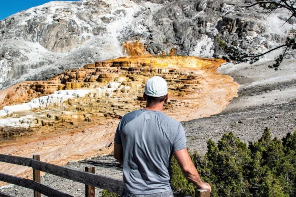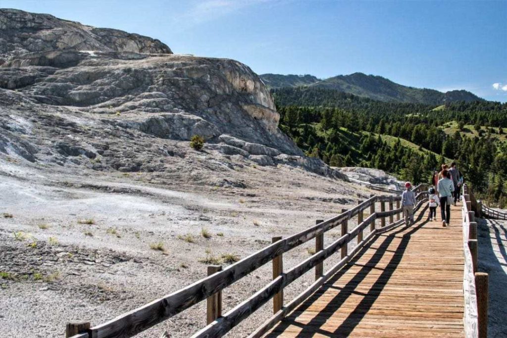 After paying your park entrance fee, you will have about 10 minutes to walk to Mammoth Hot Springs from the North entrance.