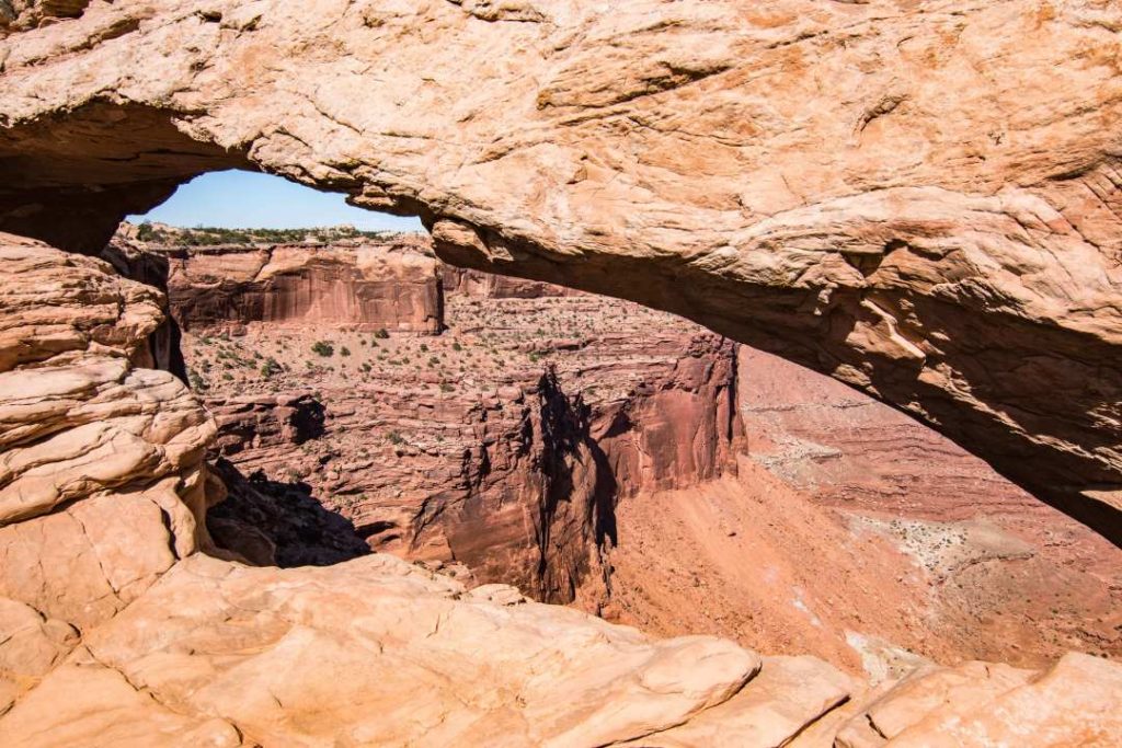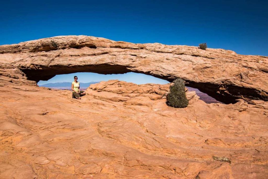 Second stop, Mesa Arch. Very popular place especially at sunrise. It is one of the most photographed places. It is an arch in the side of a cliff.