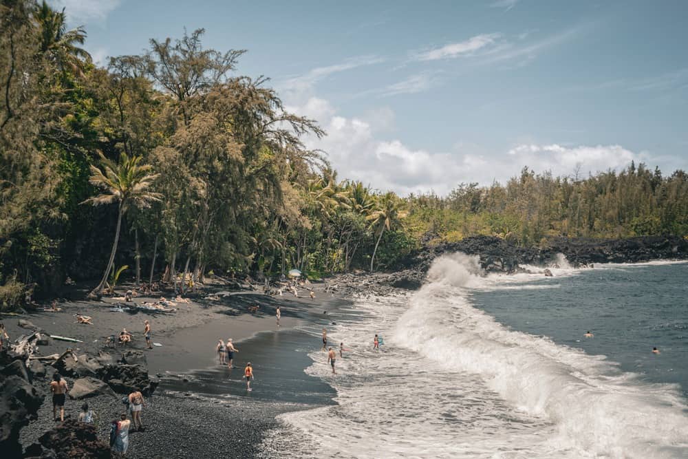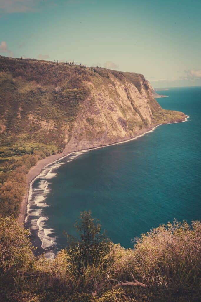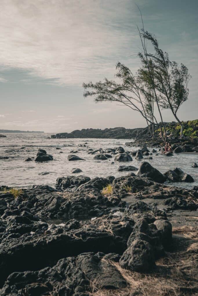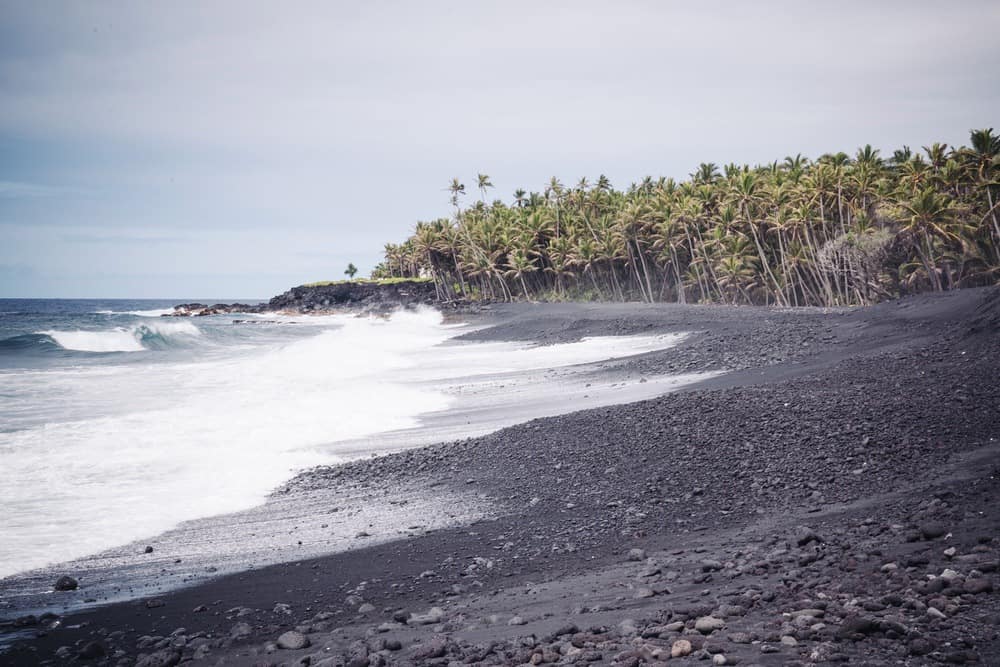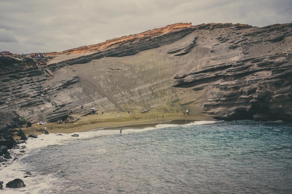 Exploring Papakōlea Green Sand Beach offers an extraordinary Big Island experience. To reach this hidden treasure, first drive to South Point Cliff, then take a path (rather poorly signposted, I grant you!) that leads to a parking lot from where you’ll be offered a shuttle service to the green-sand beach. I strongly advise you to take it; it’s worth the detour! The distinct color of the sand, tinged with green due to the presence of olivine, creates a totally unusual landscape!