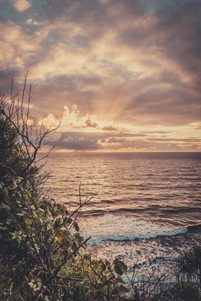 Probably one of the least crowded hikes on the archipelago, the Pololū Valley trail offers some of the most breathtaking sunrise views. It’s essentially a descent to the pebble beach. What might make this early-morning hike more accessible is to stay at the incredible Starseed Ranch: a natural site offering rustic hut accommodation in the heart of the most diverse fruit plantations; bookable on AirBnb.
