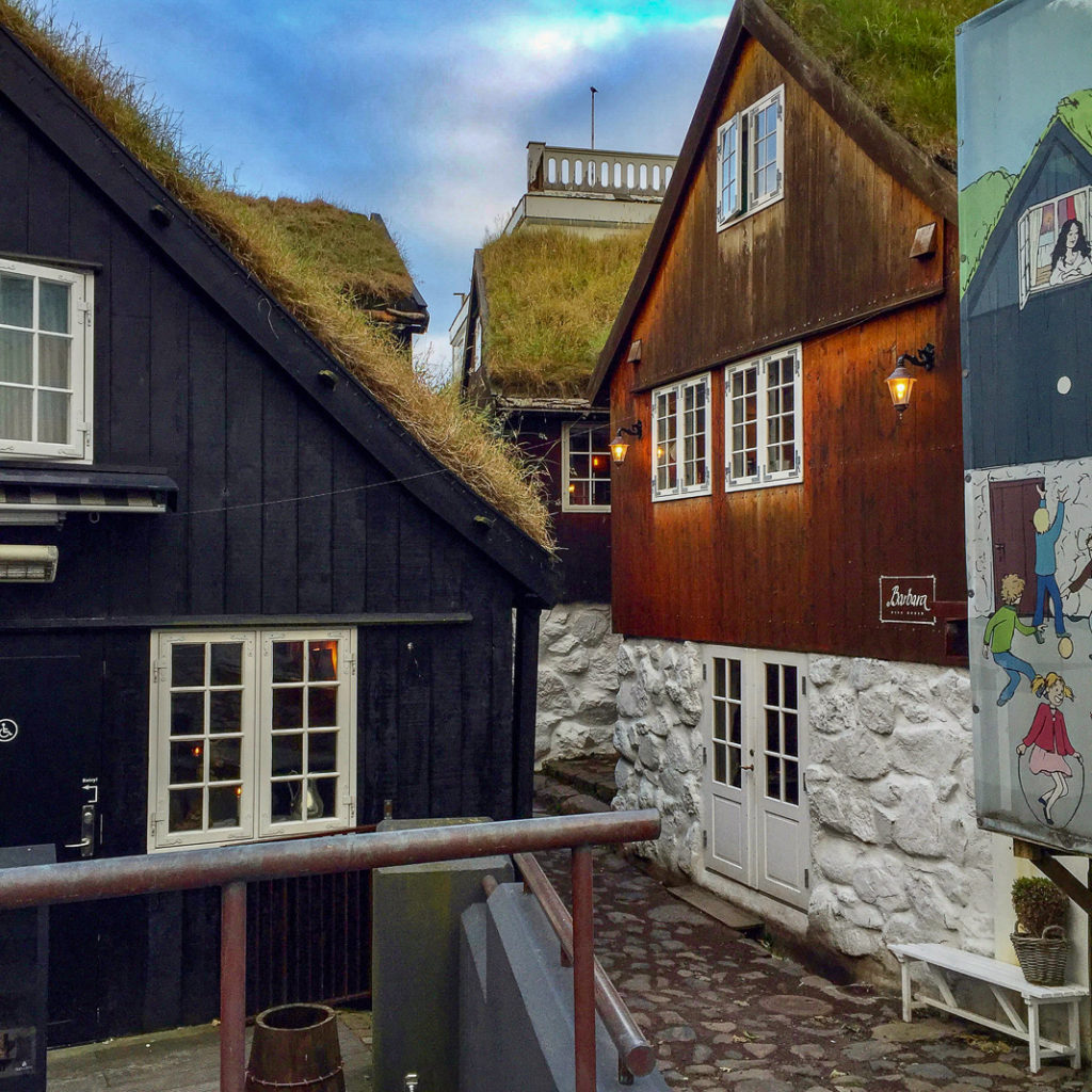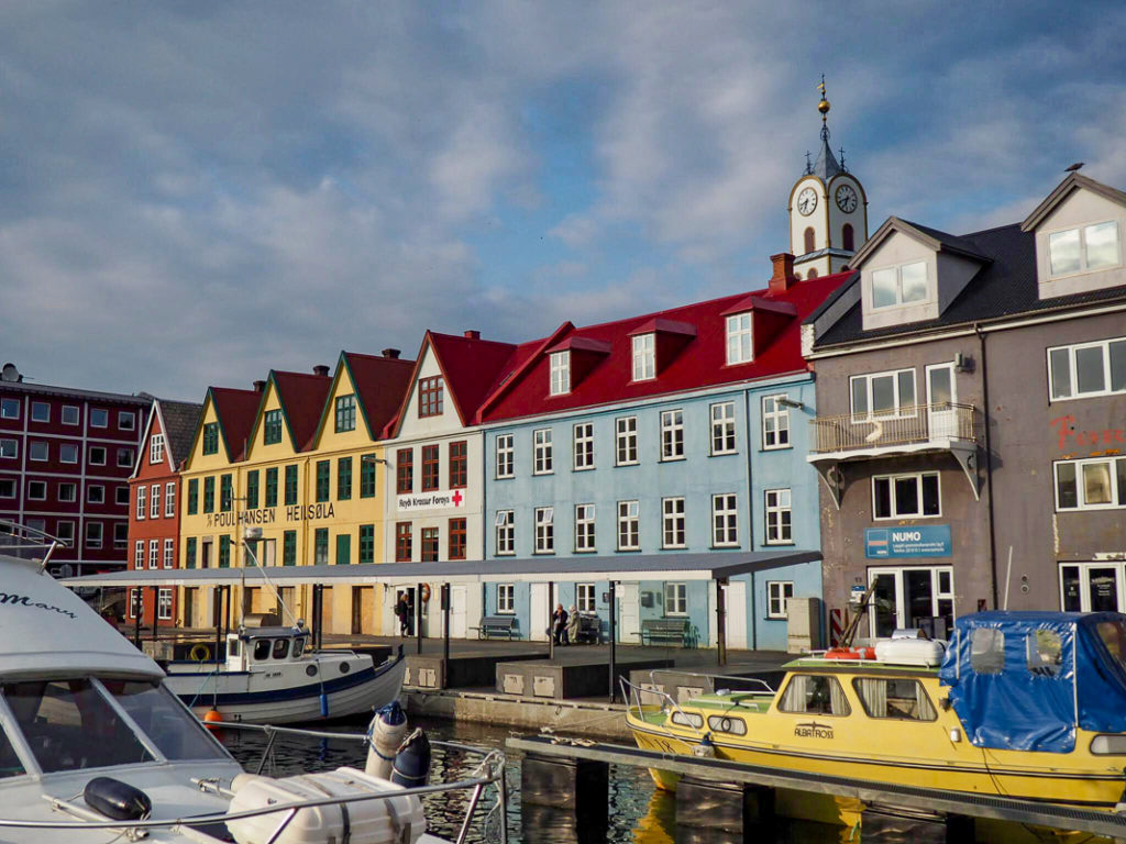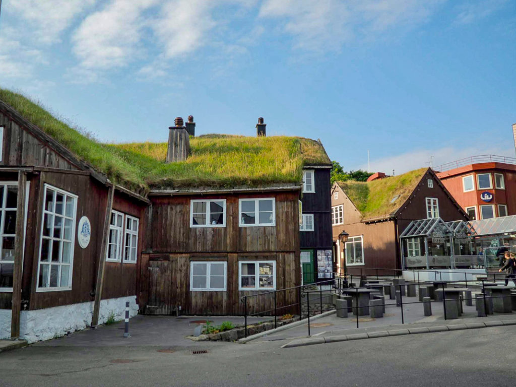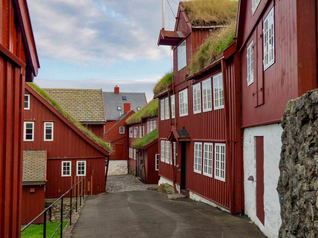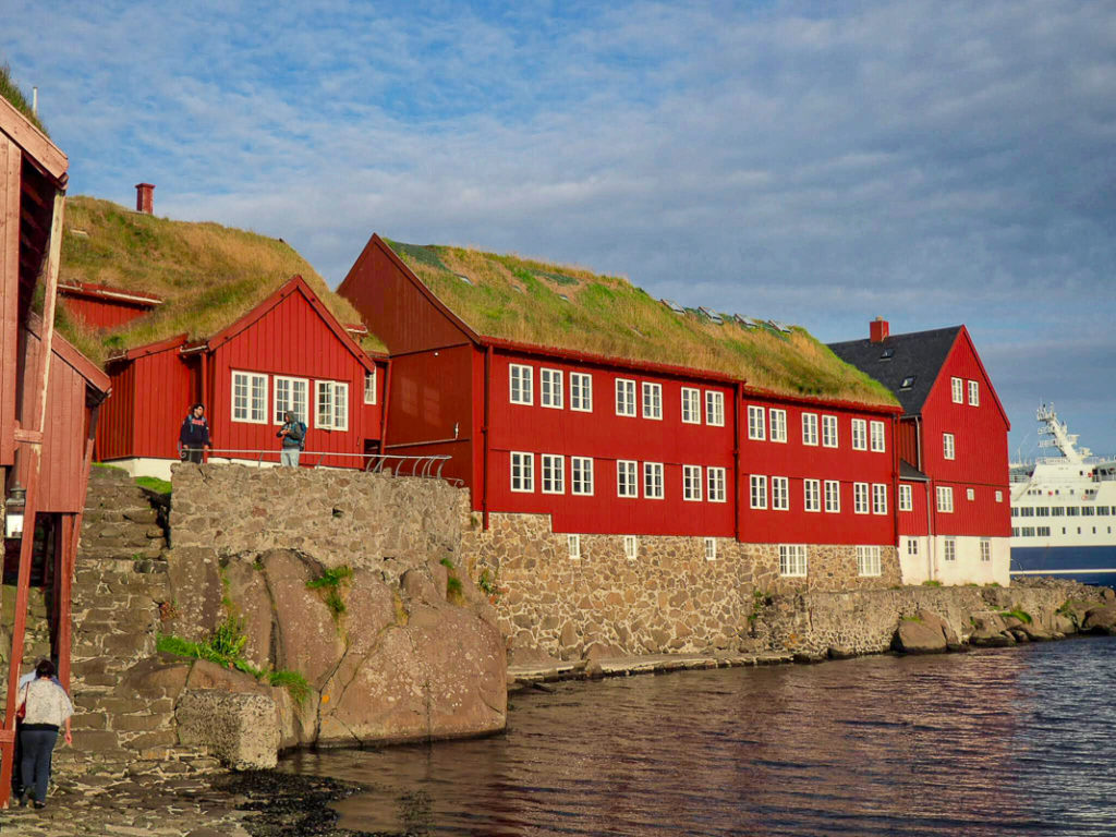 It is pleasant to walk through the streets and to observe the charming houses with lawns on the roofs. The Tinganes peninsula, with its red buildings, houses the Faroese government offices.