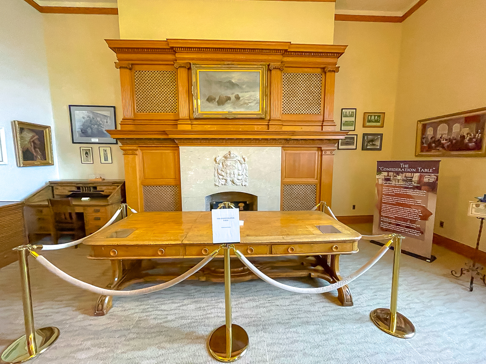 In the library is the Table of the Quebec Conference of 1864, where the Fathers of Confederation drafted the British North America Act, creating Canada as a country.