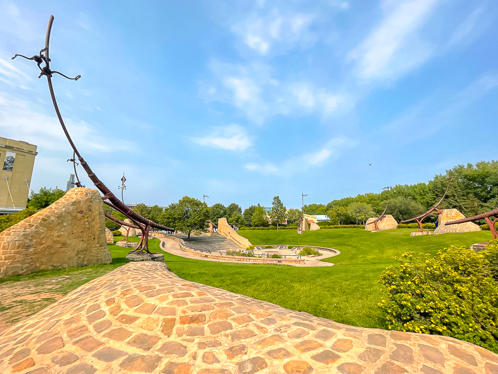 Afterwards, we visited the St. Boniface Museum, which is just a few meters away, across the Taché Parkway, which runs along the Assiniboine River. We walked back to the hotel, along the Esplanade Riel, to see the Forks one last time.
