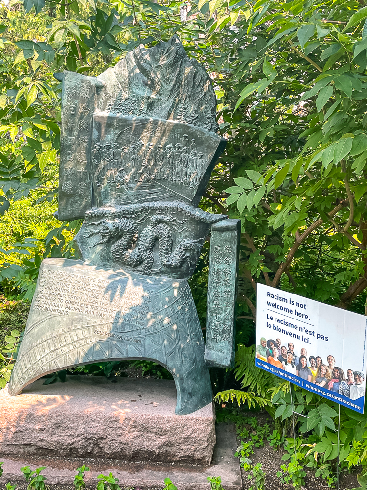 We usually visit the parliament of each province, to learn a little more about its history. Unfortunately, tours inside the building are suspended, but we were able to book a tour of the gardens with students from the francophone university of Saint-Boniface.
