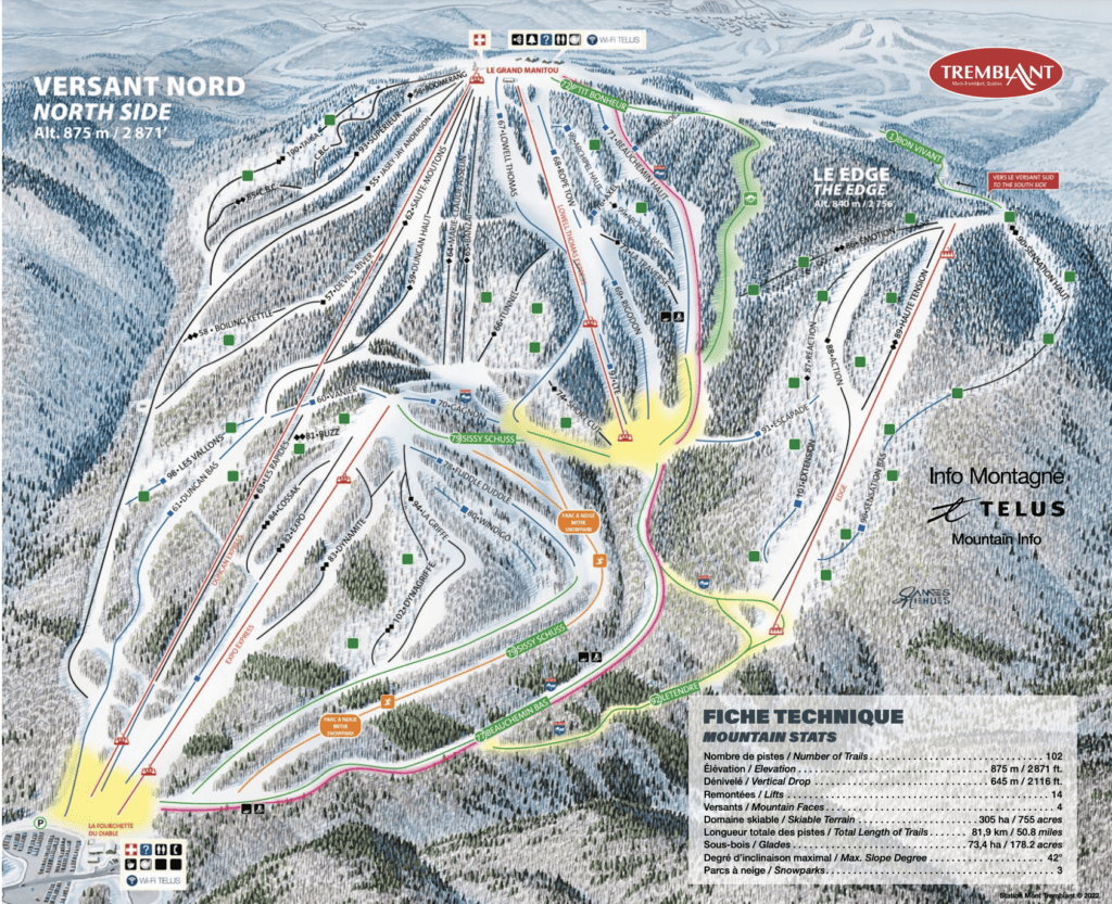 With over 3 million visitors a year, Mont-Tremblant is a world-renowned ski destination. It offers a variety of slopes to suit all levels of skier and is particularly popular for its picturesque alpine village. Located at the foot of the mountain, the village boasts over 30 restaurants, bars, cafés and 35 stores to suit all tastes.
