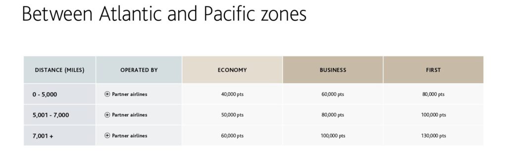 Here is Aeroplan’s chart for travel between Atlantic and Pacific Zones: