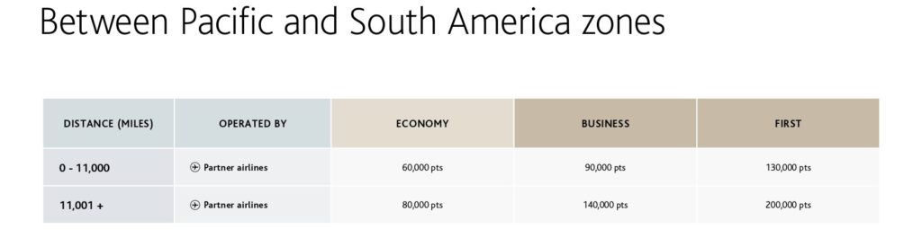 Here is Aeroplan’s chart for travel between Pacific and South America Zones: