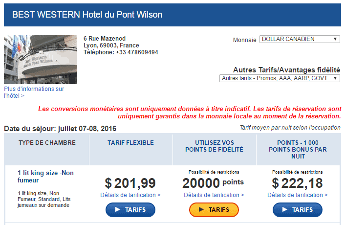 I decided to use 20,000 points for a night in Lyon: