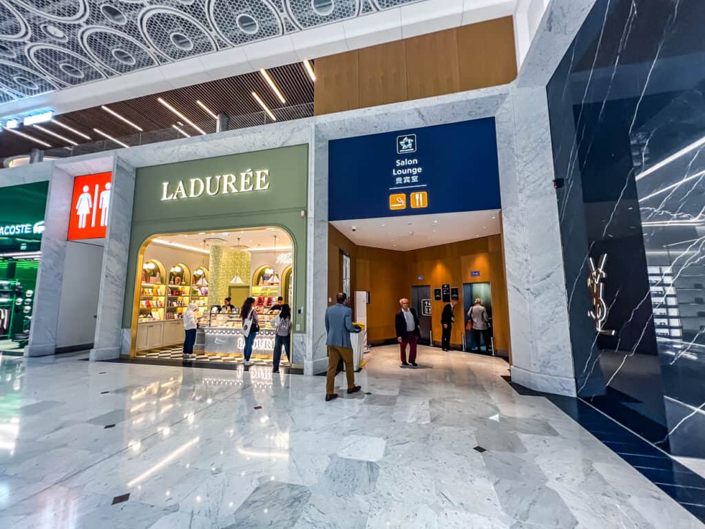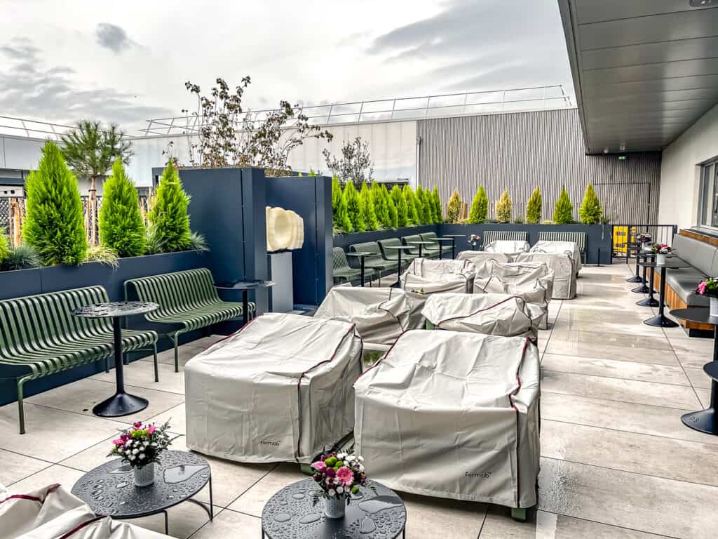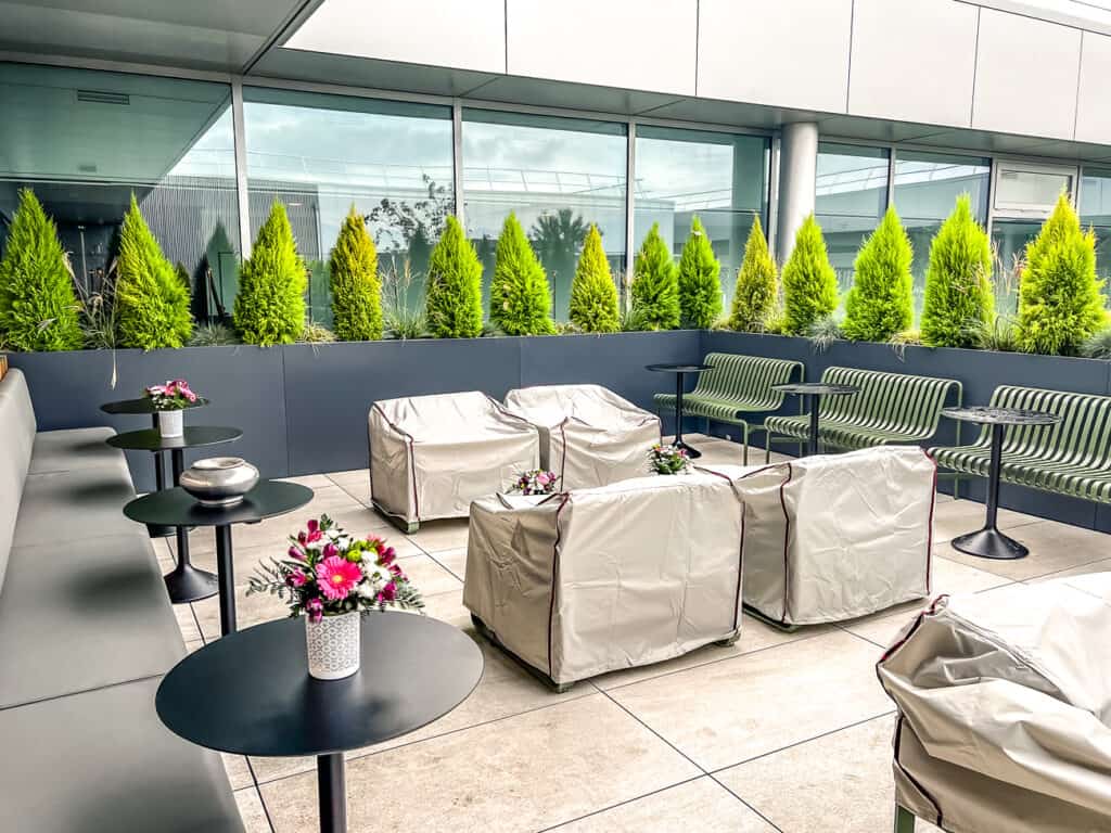 To access the Star Alliance lounge at Paris-Charles de Gaulle, you must pass through security and immigration. The entrance is next to the Ladurée and Yves Saint Laurent stores. You’ll need to take the elevator and cross a corridor to get there. A lovely terrace and garden can already be seen on the left before we enter.