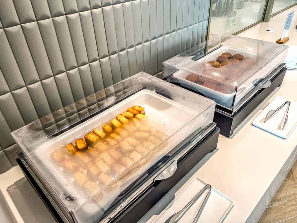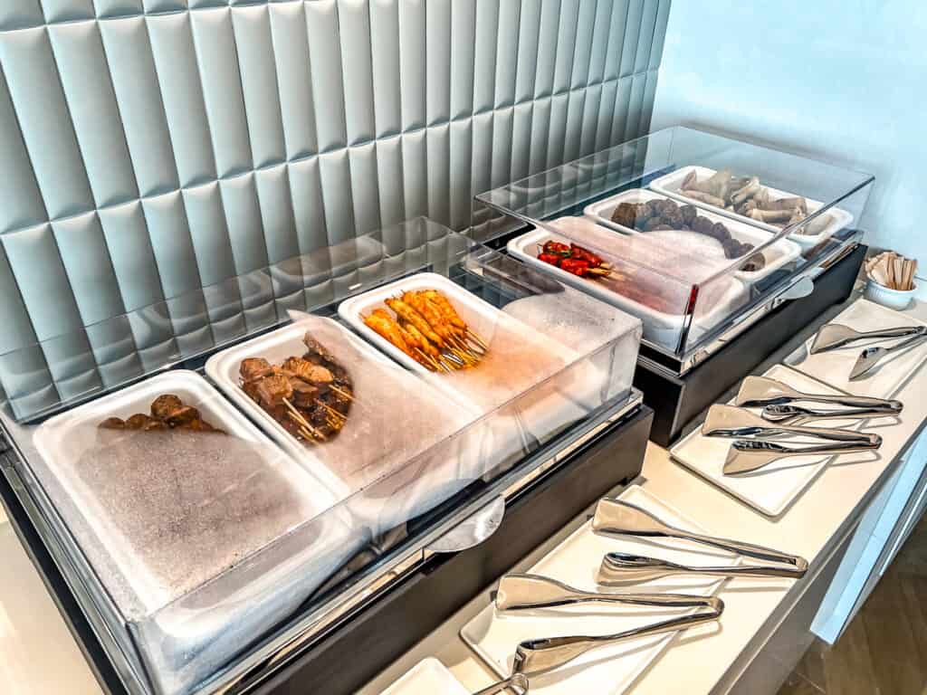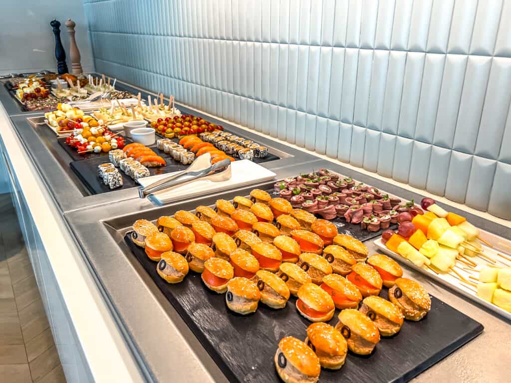 The buffet is varied. Star Alliance offered petits fours, fruit brochettes, and appetizers for the occasion.