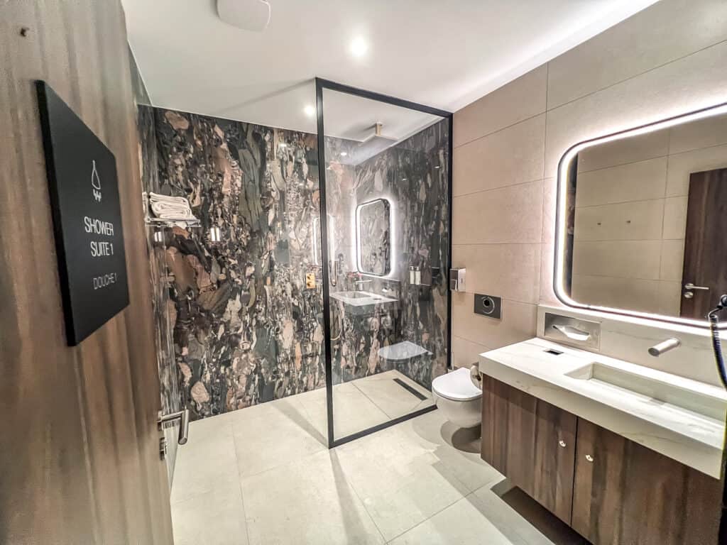 Finally, before heading to your departure gate, you can enjoy one of the four showers in one of the well-appointed suites. The latter is very vast.