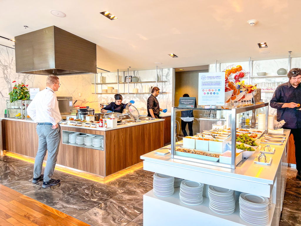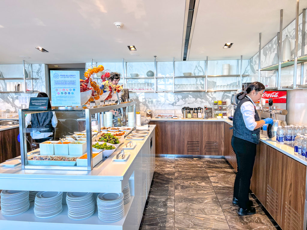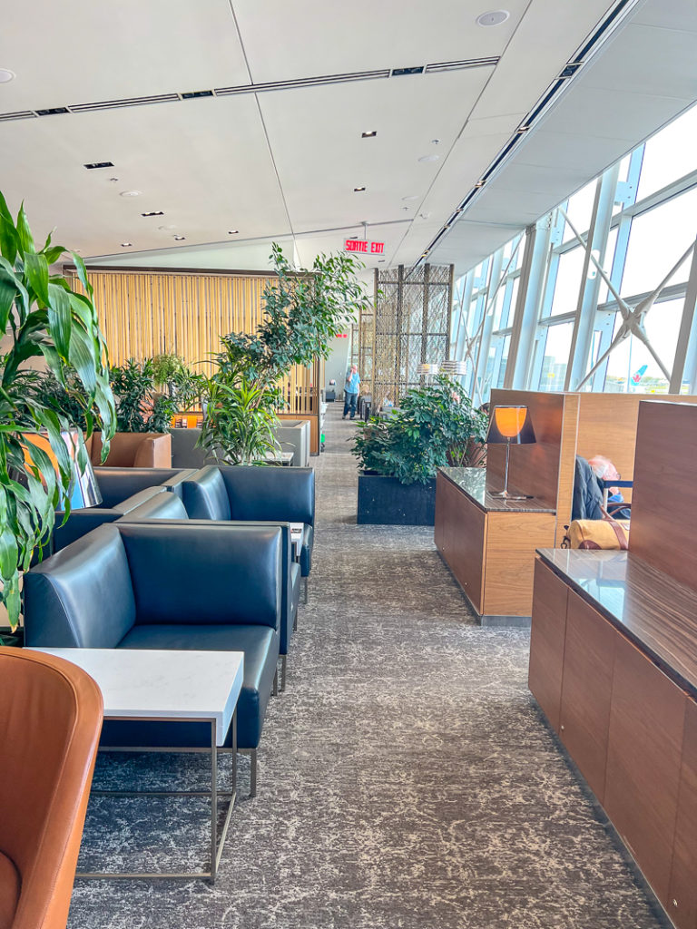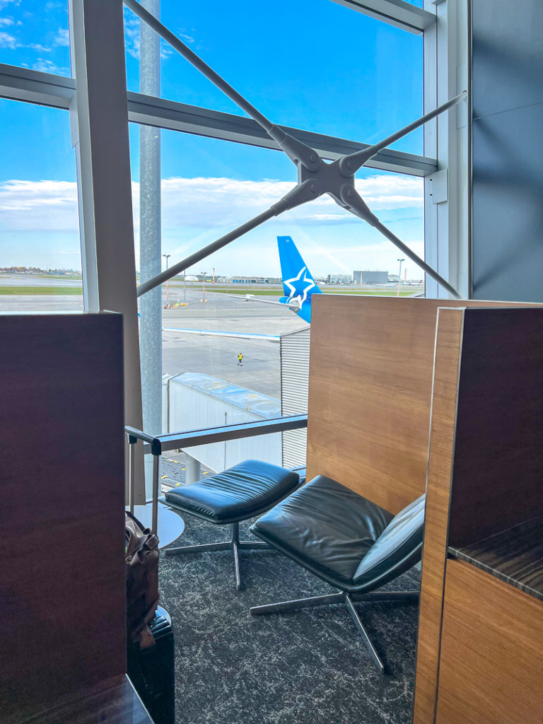 This Air Canada Maple Leaf Lounge offers everything you want before a flight: calm, plenty of space to rest or work, a lovely light and views of the tarmac, an open buffet… in short, a pleasant lounge before starting a trip to the United States.