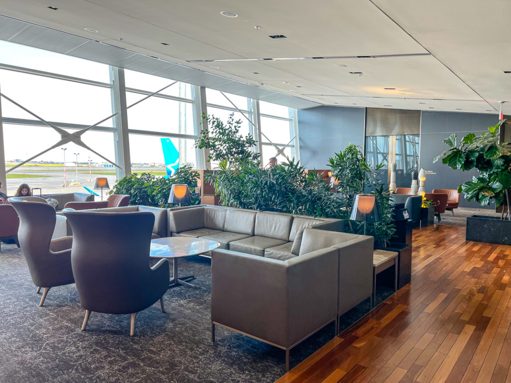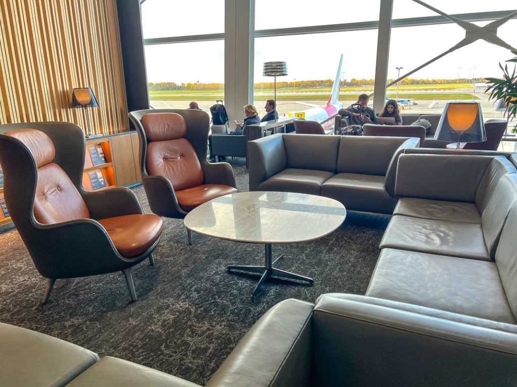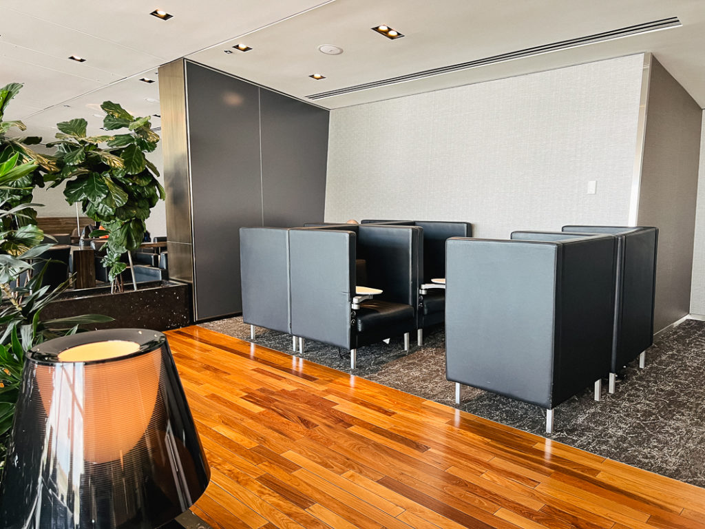 The lounge areas are multiple and well distributed with different types of leather chairs depending on whether you want to eat, rest or work. As you can see, this lounge is not crowded in the early morning, it’s comforting!