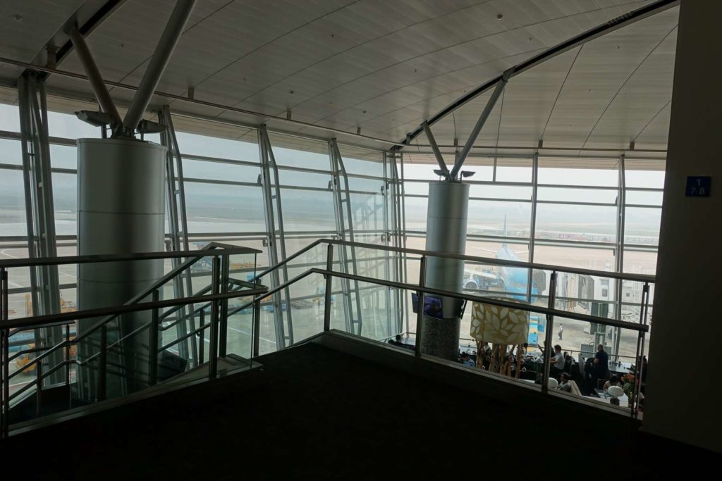 It is located in a corner of the terminal, which offers beautiful views of the tarmac.