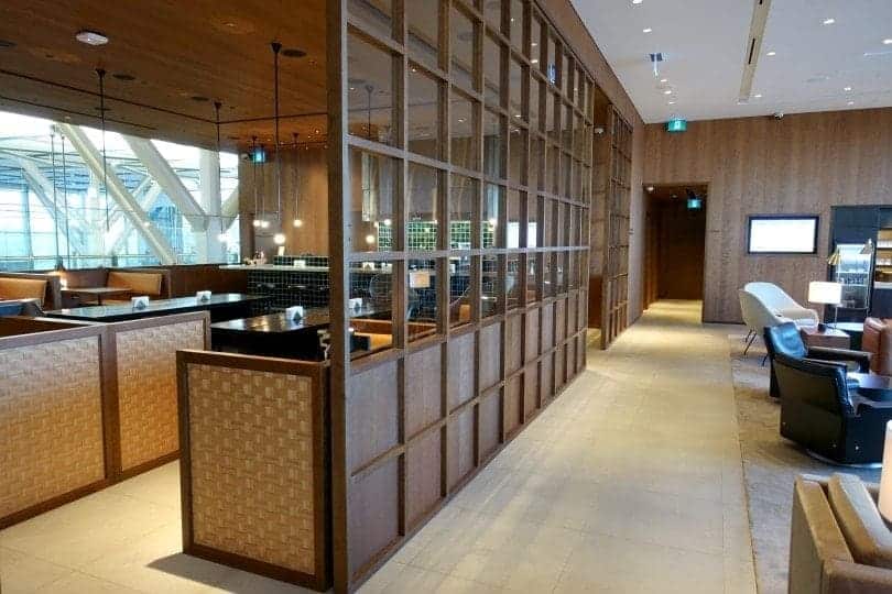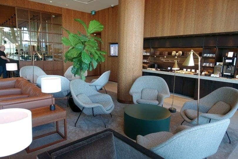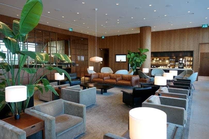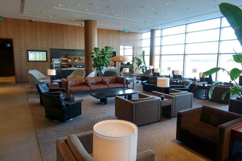 We are the first to enter the Cathay Pacific lounge this evening. First impression: a really beautiful living room, whose materials make the space particularly warm. A series of photos to prove it to you: