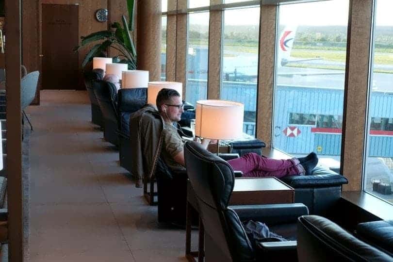 We arrive in front of the Plaza Premium Lounge.