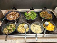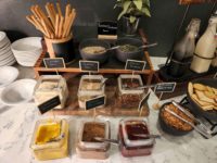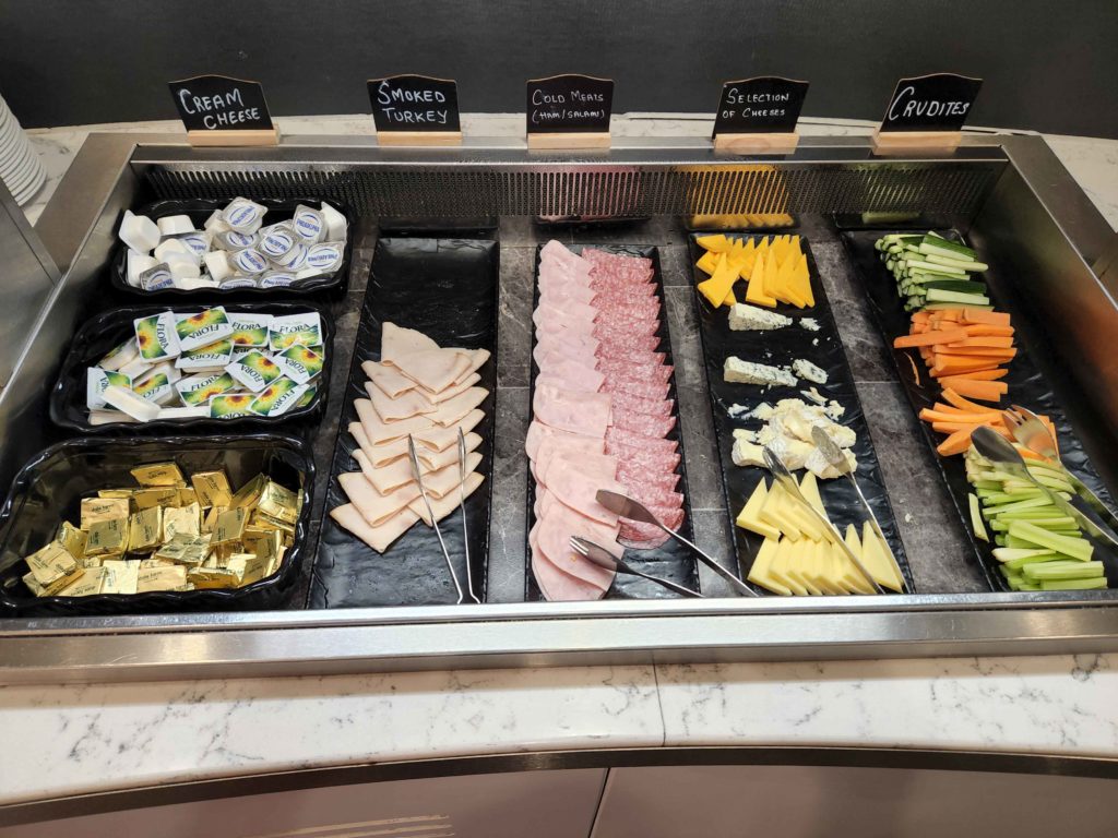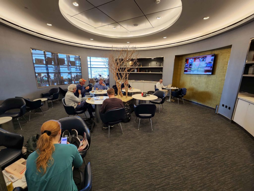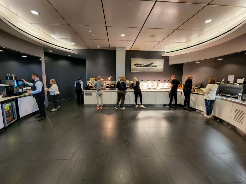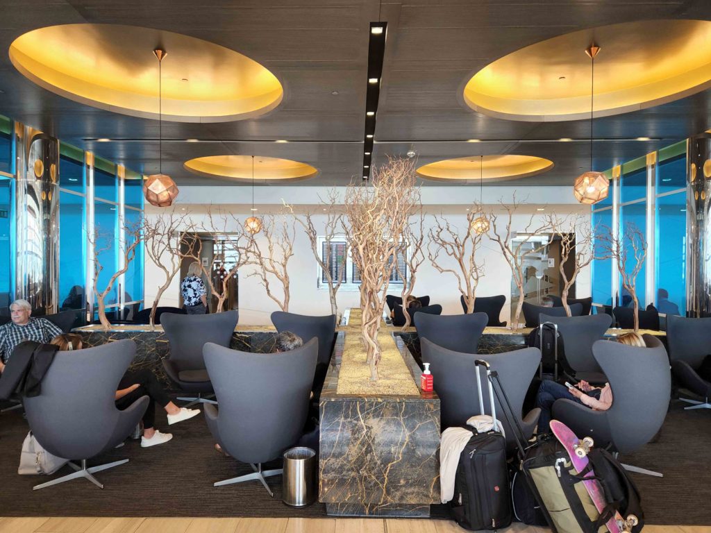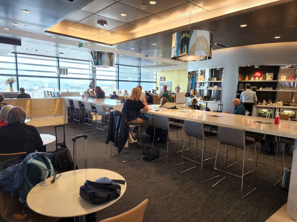 The lounge is quite large and features various styles of comfortable seating along with lots of power ports. One thing I loved about it is that it’s a fairly long but narrow lounge, with floor-to-ceiling windows along the entire length. This allows for a lot of natural light and provides a bright, airy feeling inside. I was there from late morning until early afternoon and while the lounge was busy, it wasn’t overly crowded. There is seating for 280 guests.