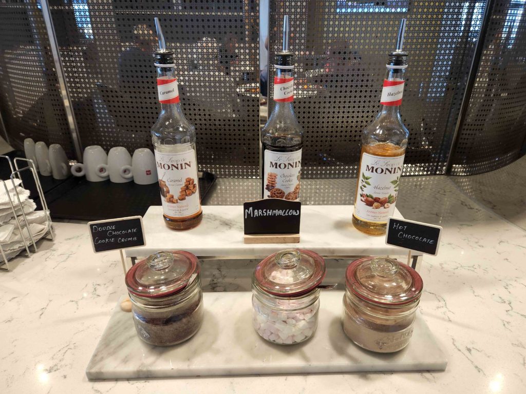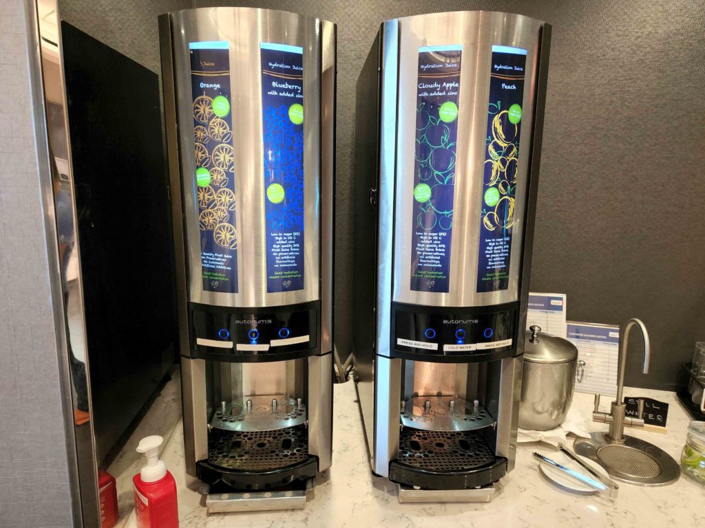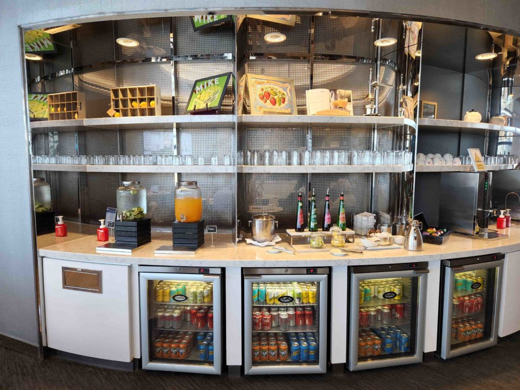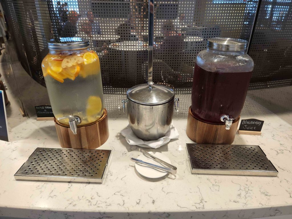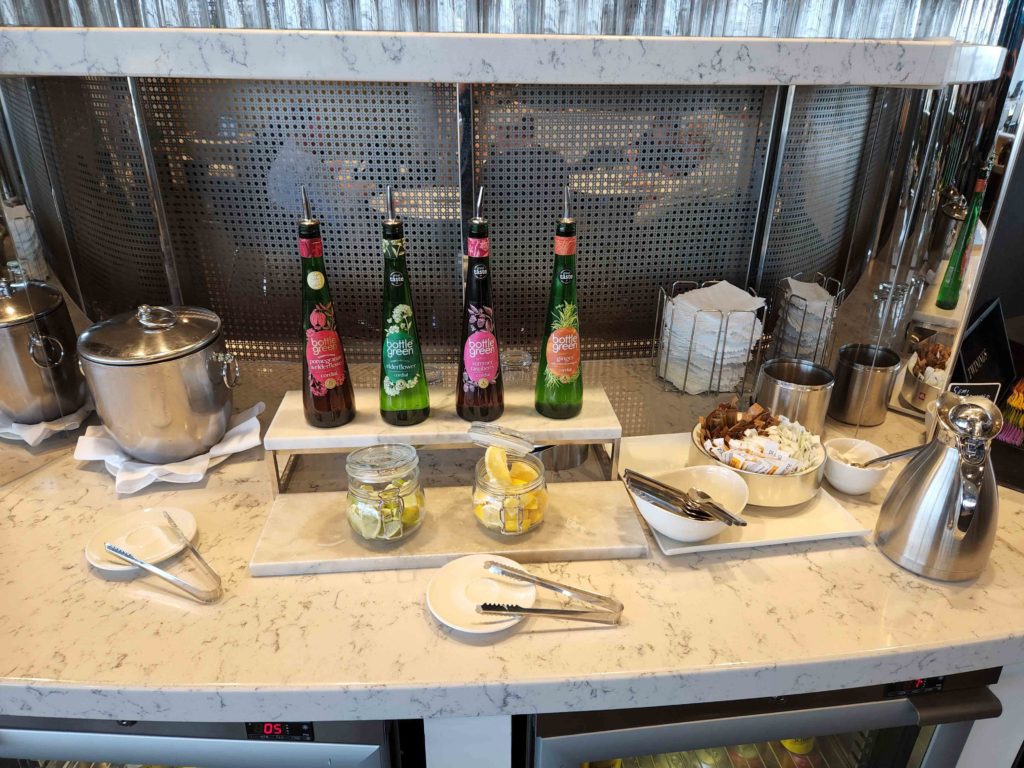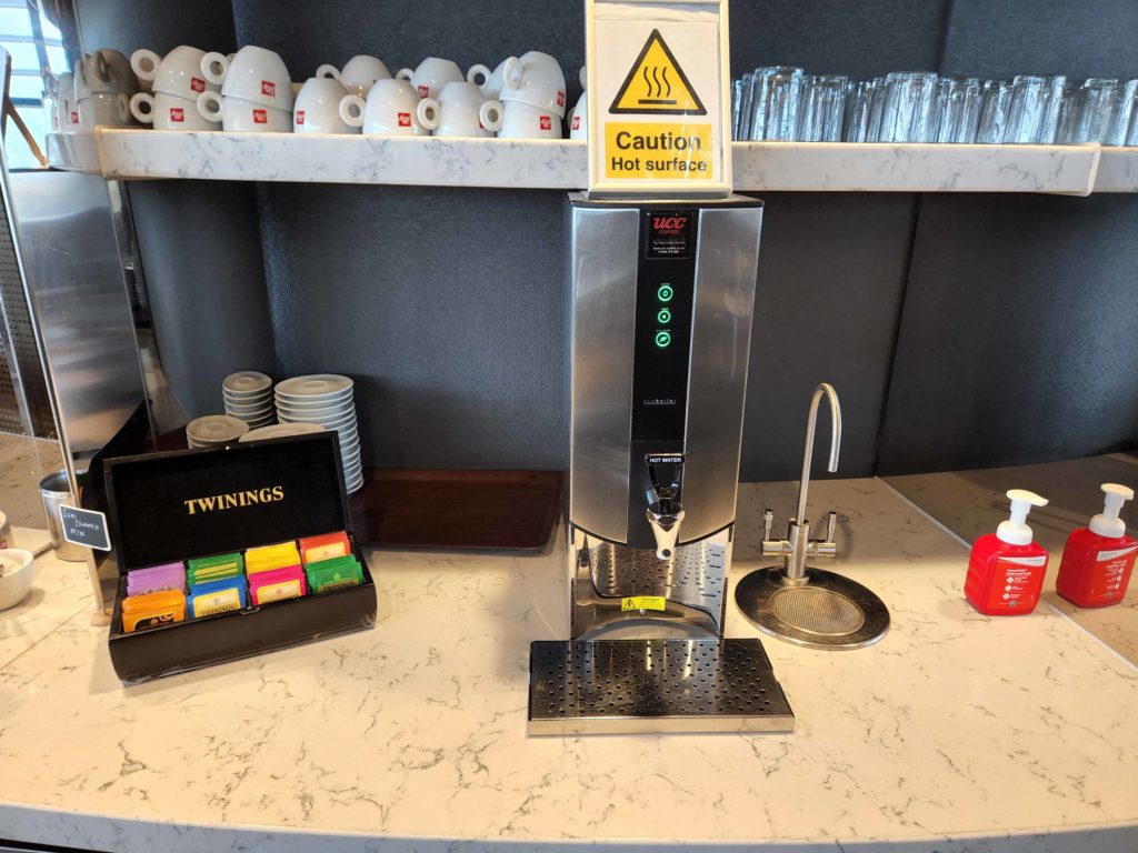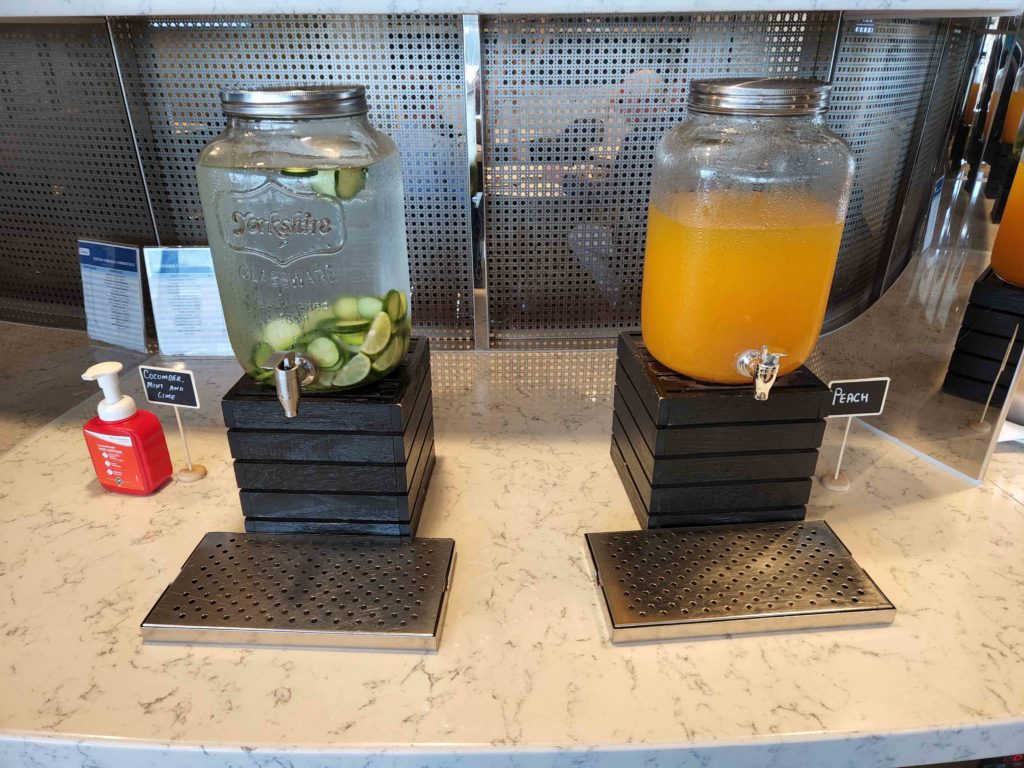 At the other end of the lounge there was another drink station featuring water, juice, tea, cordial, coffee, and soft drinks.