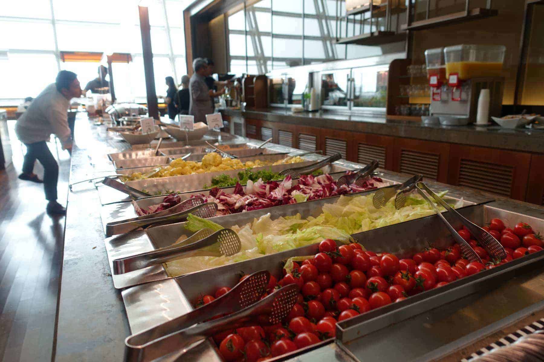 First of all, there is a dining area with tables dedicated to eating. The buffet is classic: wine, beer, cold and hot dishes etc. A solid offer but nothing extraordinary. Asiana has a better in-flight service.